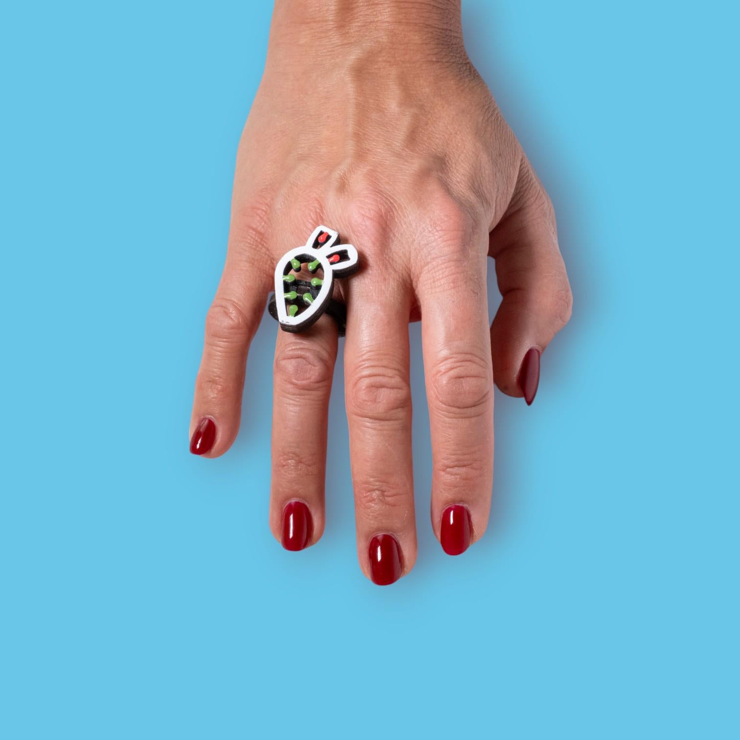 Anello regolabile Ficodindia: Anello in legno a forma di Luminaria Salentina