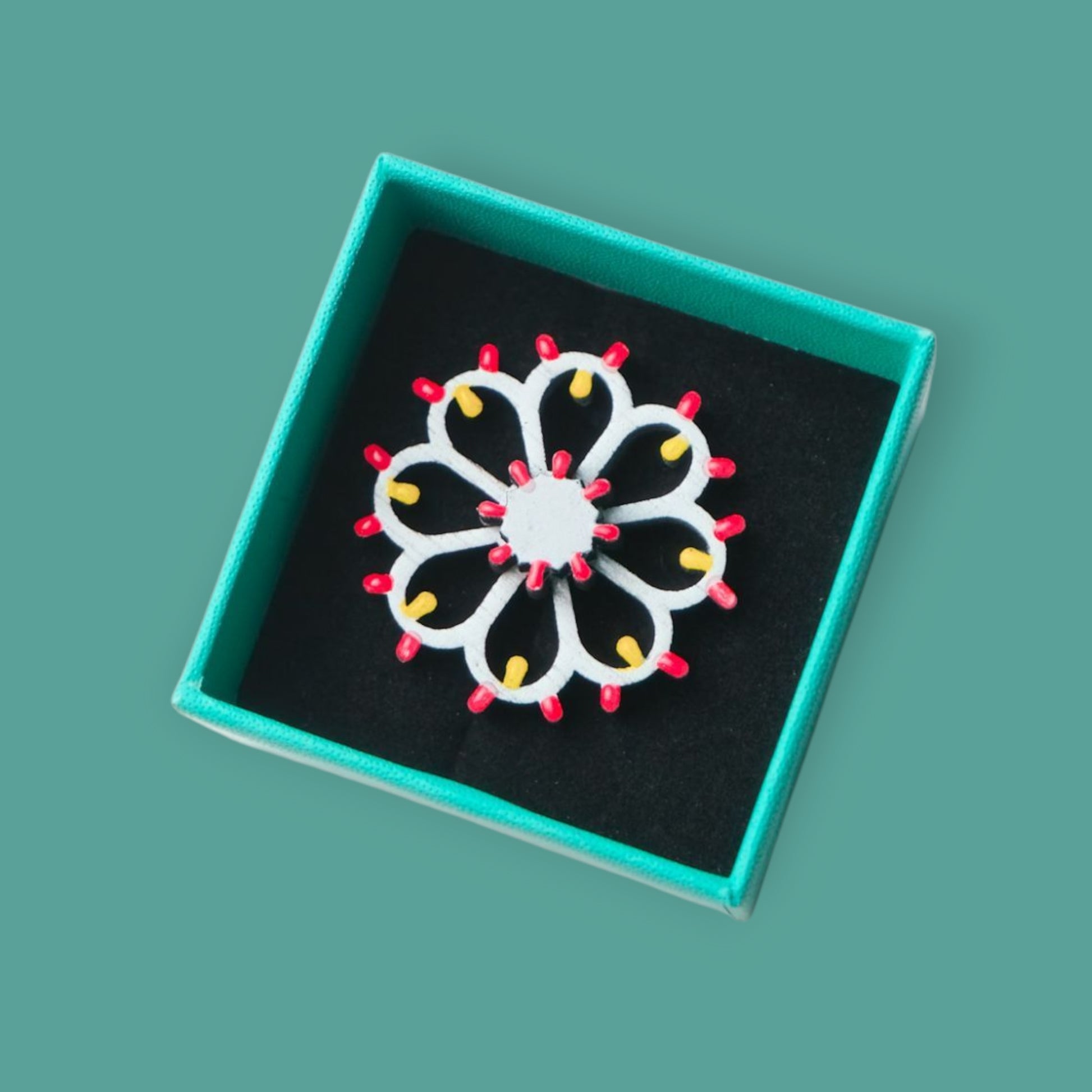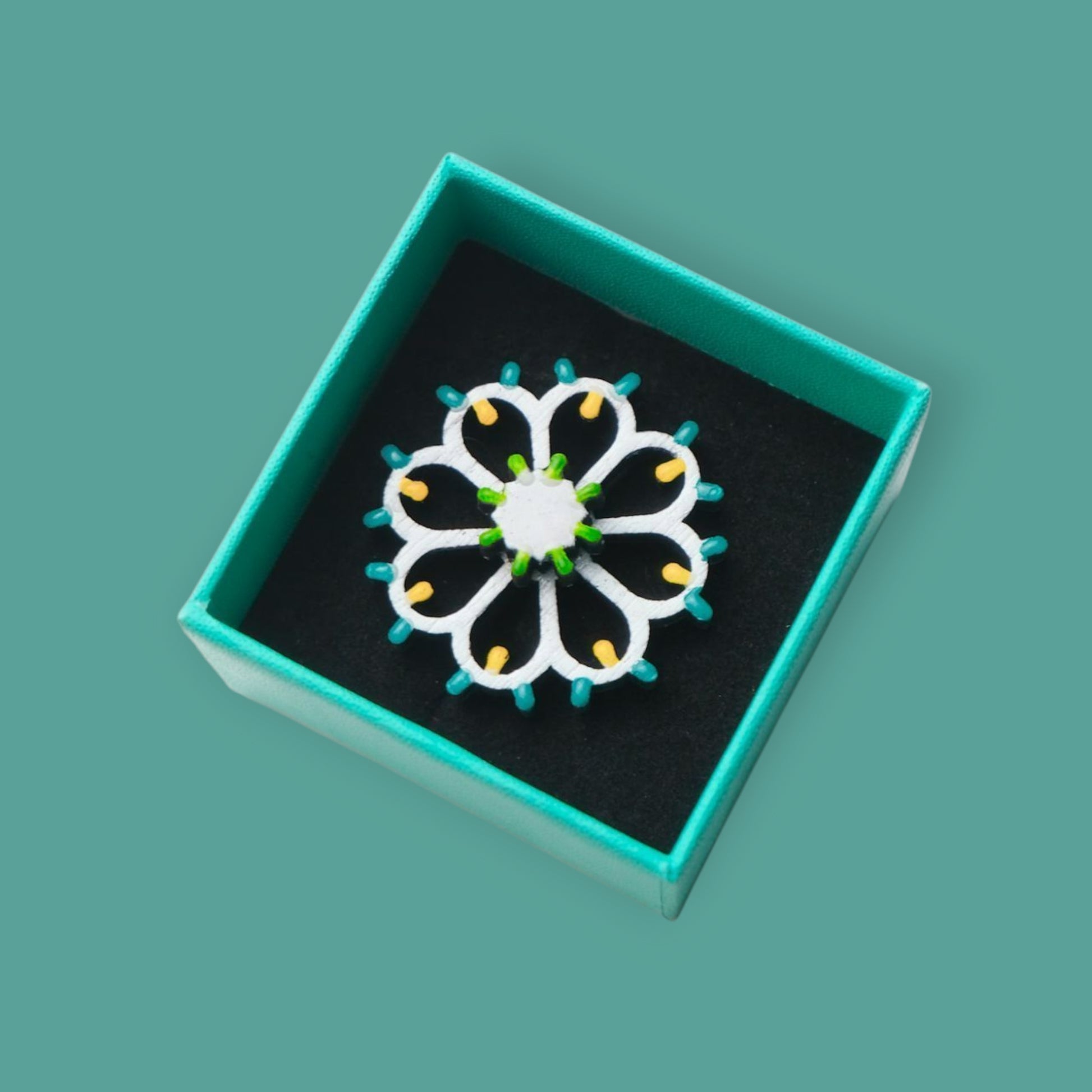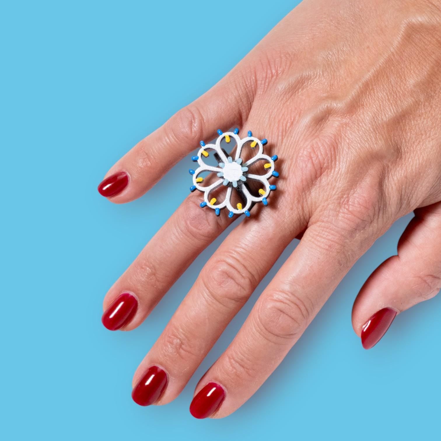 Ogni anello è dipinto e resinato a mano, con cura artigianale e attenzione al dettaglio, per offrire un gioiello unico, leggero e durevole, che racconta la magia delle luminaria salentine.