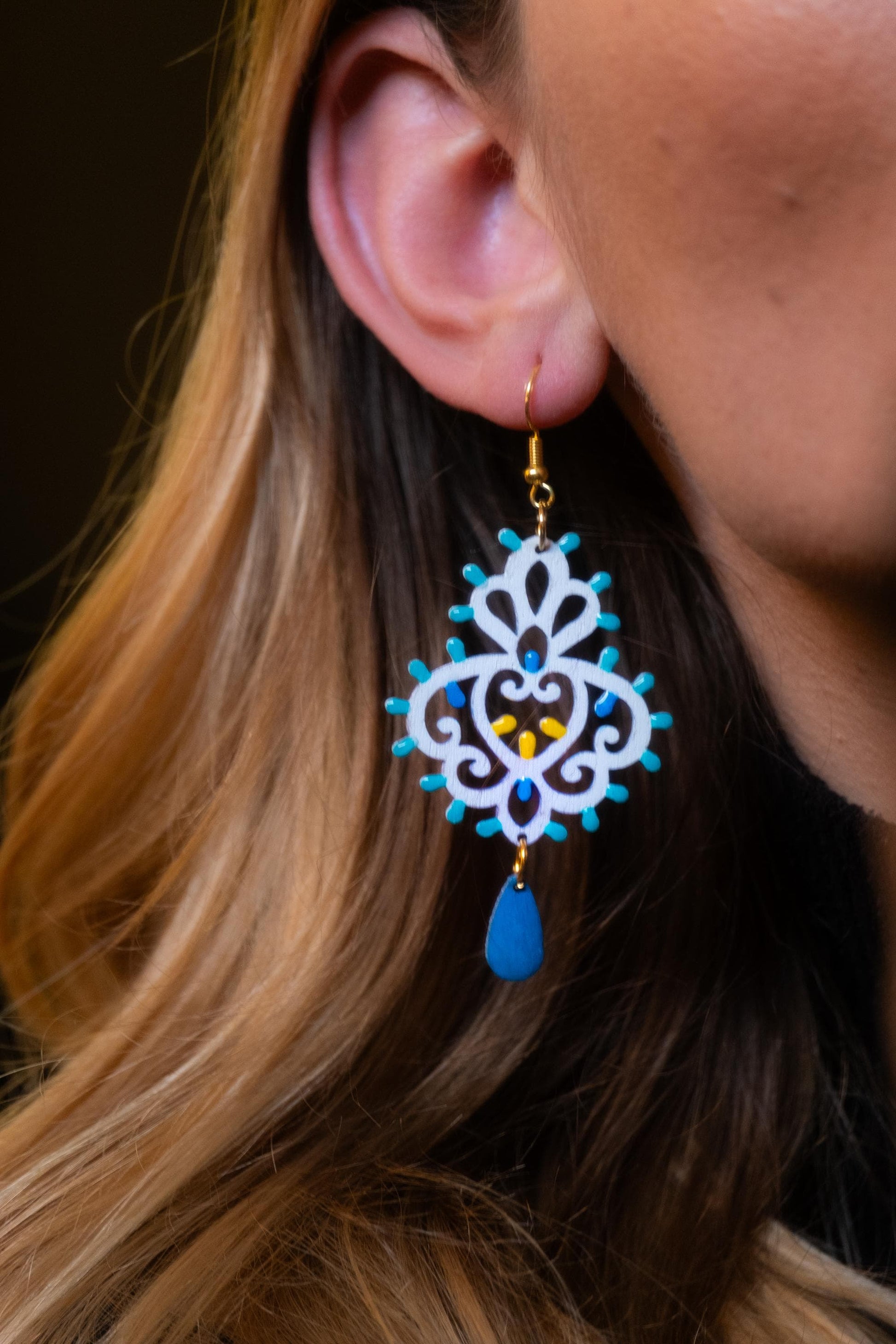 Barocchini lunghi: Orecchini in legno a forma di Luminaria Salentina