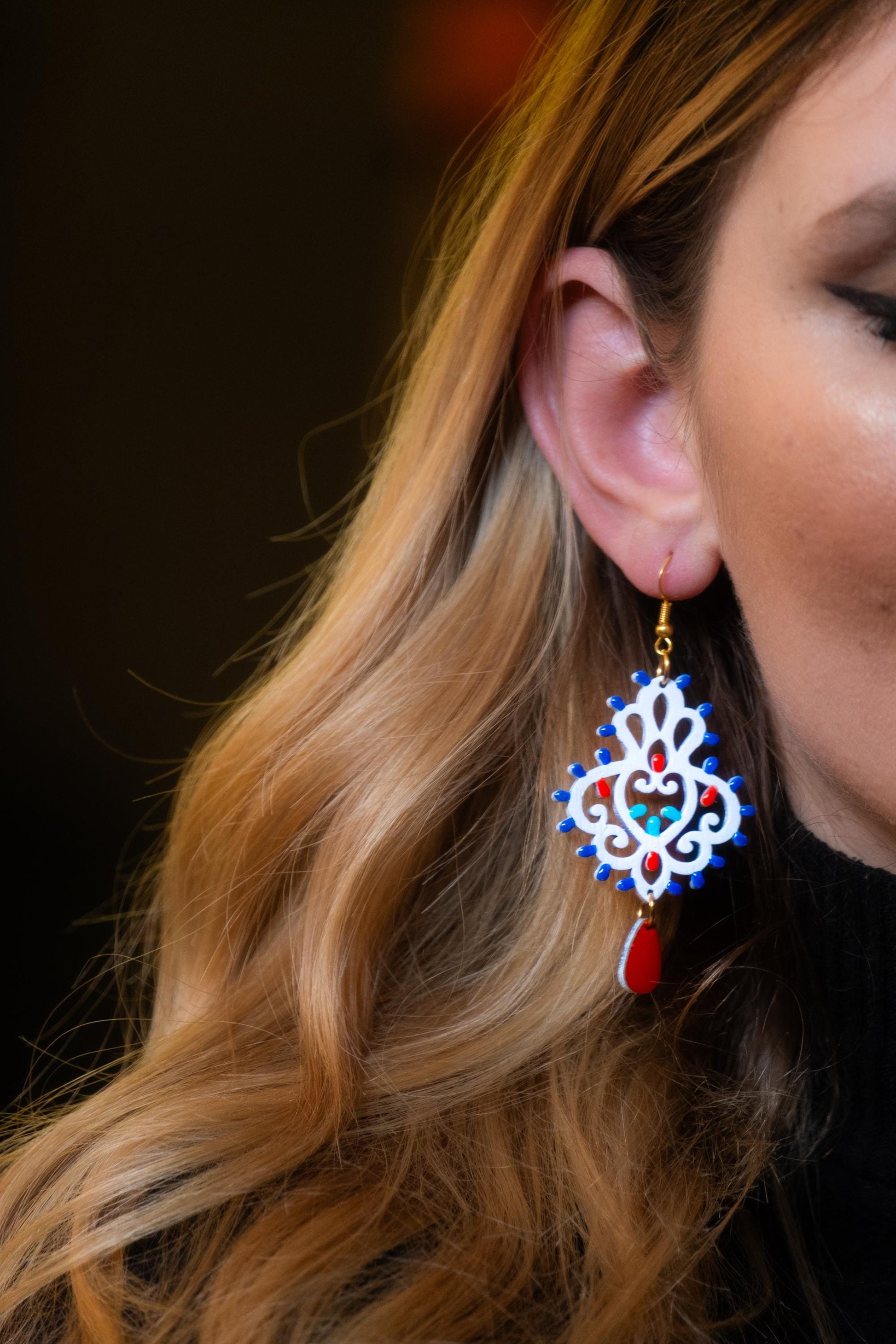 Una vera luminaria salentina da indossare: I nostri gioielli artigianali sono realizzati con modelli in scala delle tradizionali luminarie riprendendo i materiali originali: il cavo elettrico diventa collier, mentre i pendenti vengono realizzati in legno di pioppo, dipinti e resinati a mano.