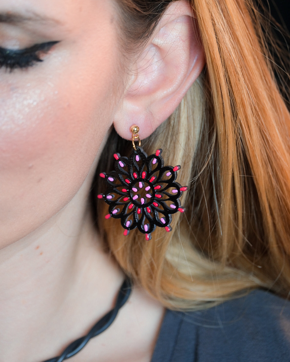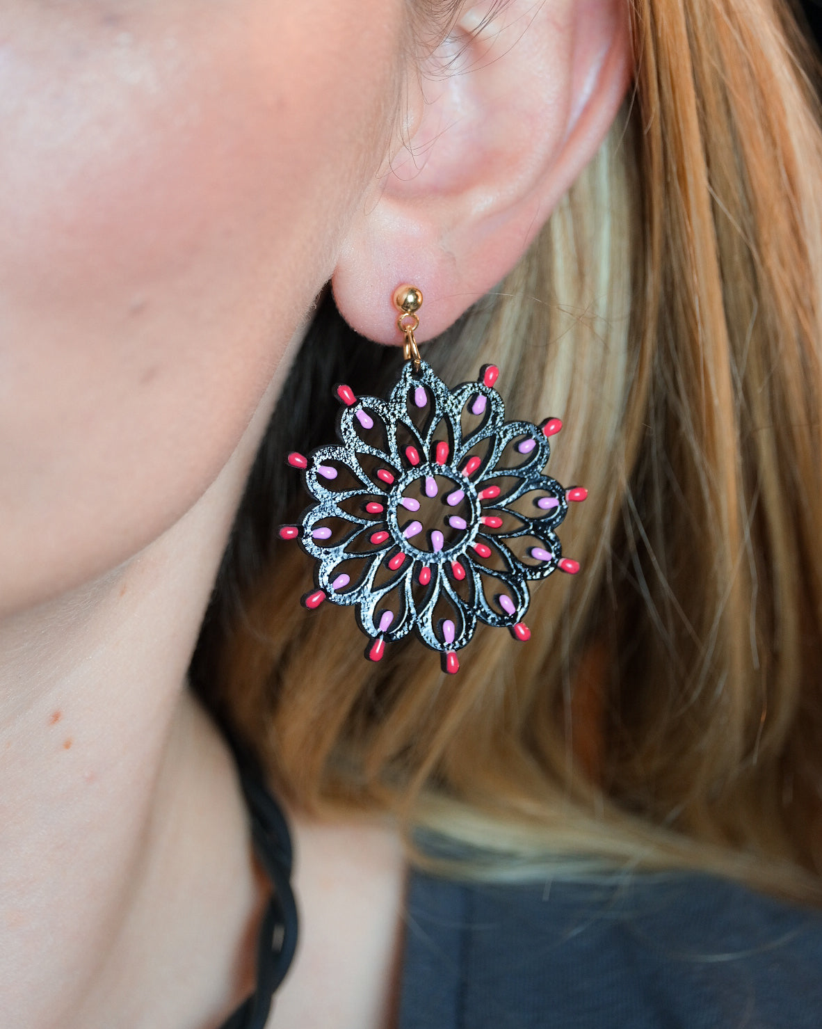 EDIZIONE LIMITATA Rosone Otranto nero - Punto Luce: Orecchini in legno a forma di Luminaria Salentina con chiusura a perno