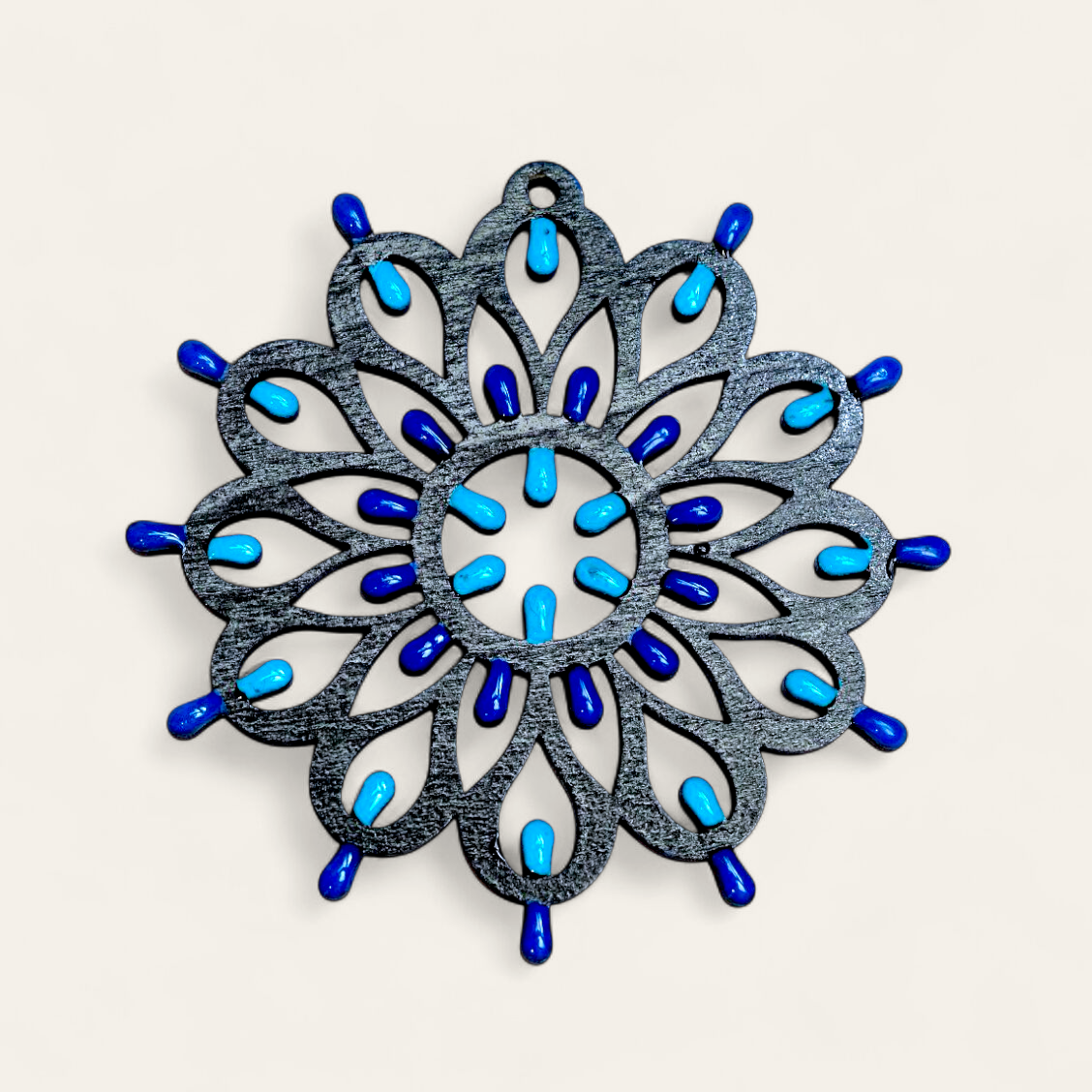Realizzati a mano in legno intagliato, dipinti e rifiniti con resina protettiva. Montati su perno accaio inox placcato oro 24k.