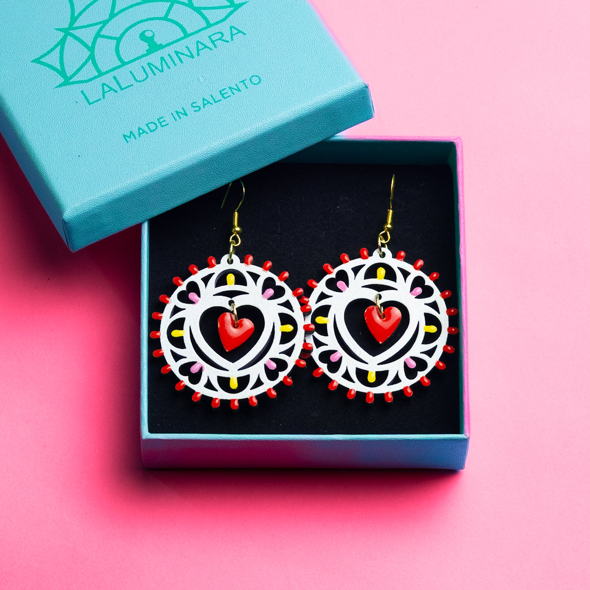 ho ricevuto la confezione regalo con questi orecchini fantastici veramente belli , hanno tutto il calore salentino