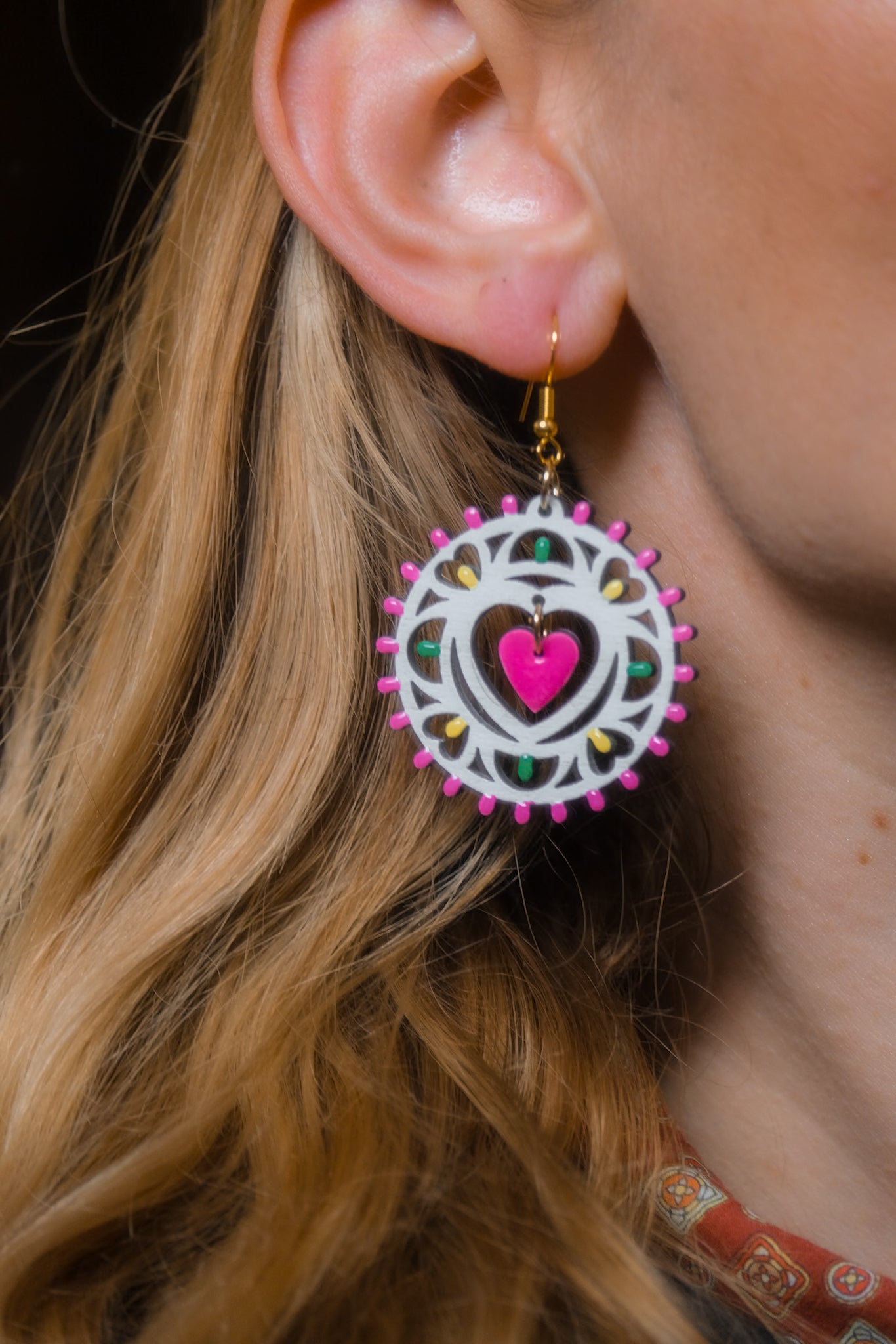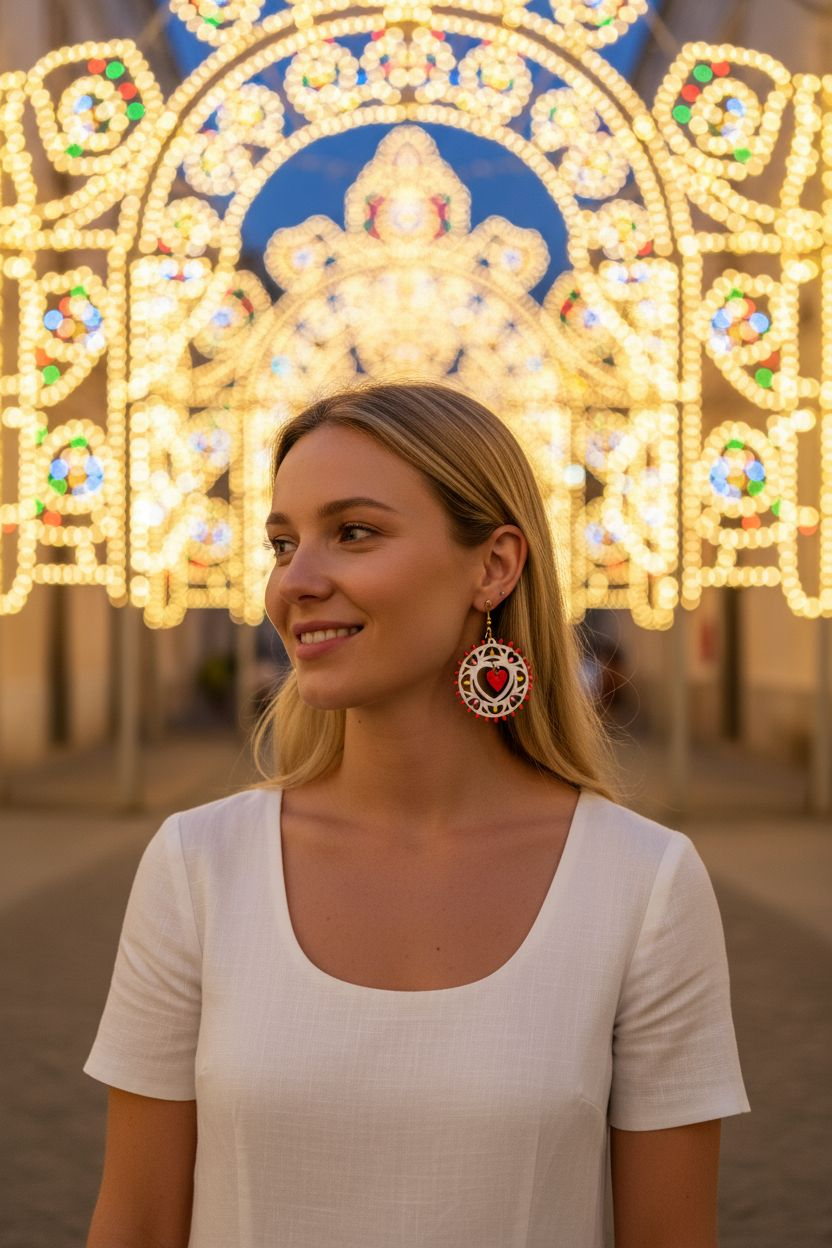 Rosone Tamburello: Orecchini in legno a forma di Luminaria Salentina
