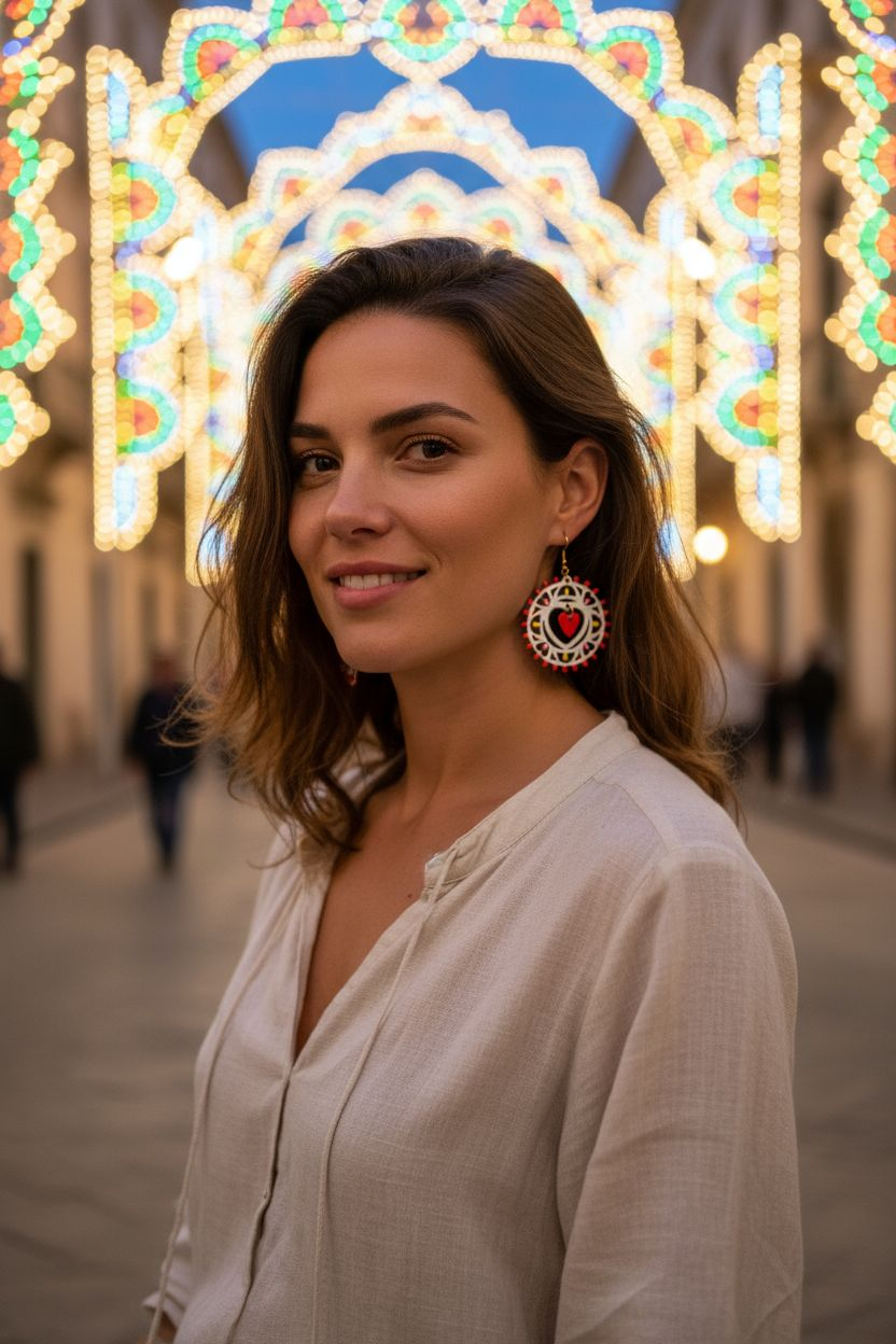 Questo modello nasce dall’unione delle luminarie salentine e della tradizione musicale del Sud: un cerchio di luce che vibra, impreziosito da un cuore centrale che racconta passione, calore e radici.