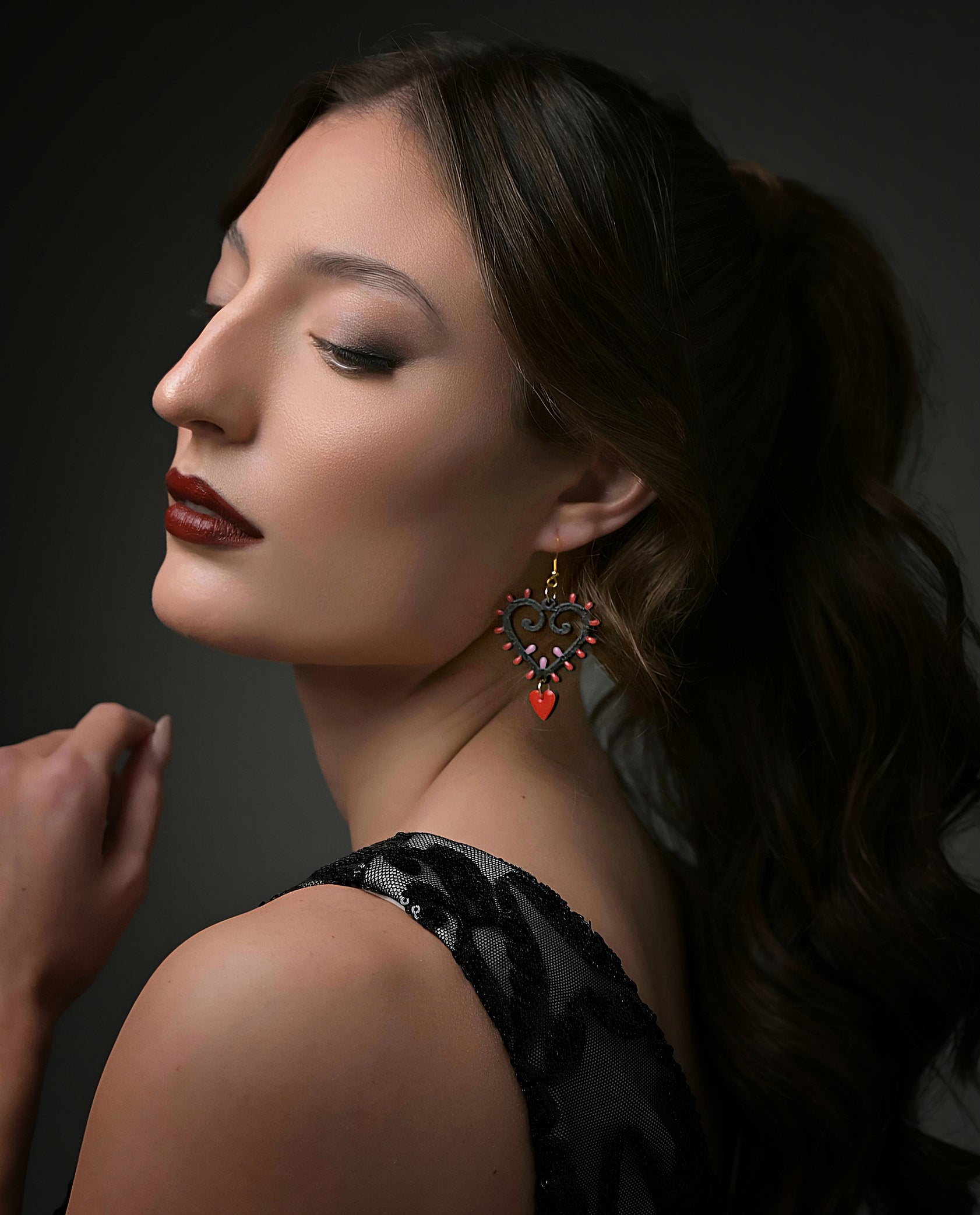 Cuore di Luce nero: Orecchini in legno a forma di Luminaria Salentina