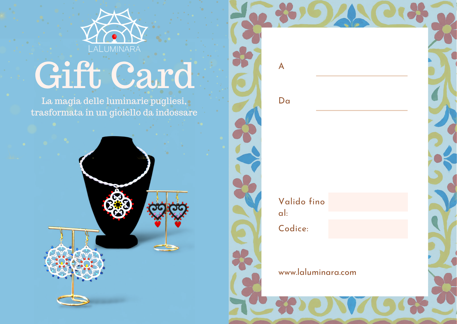Il nostro GIFT CARD è il dono perfetto per chi ama i dettagli unici, la tradizione e la luce delle feste del Sud Italia.