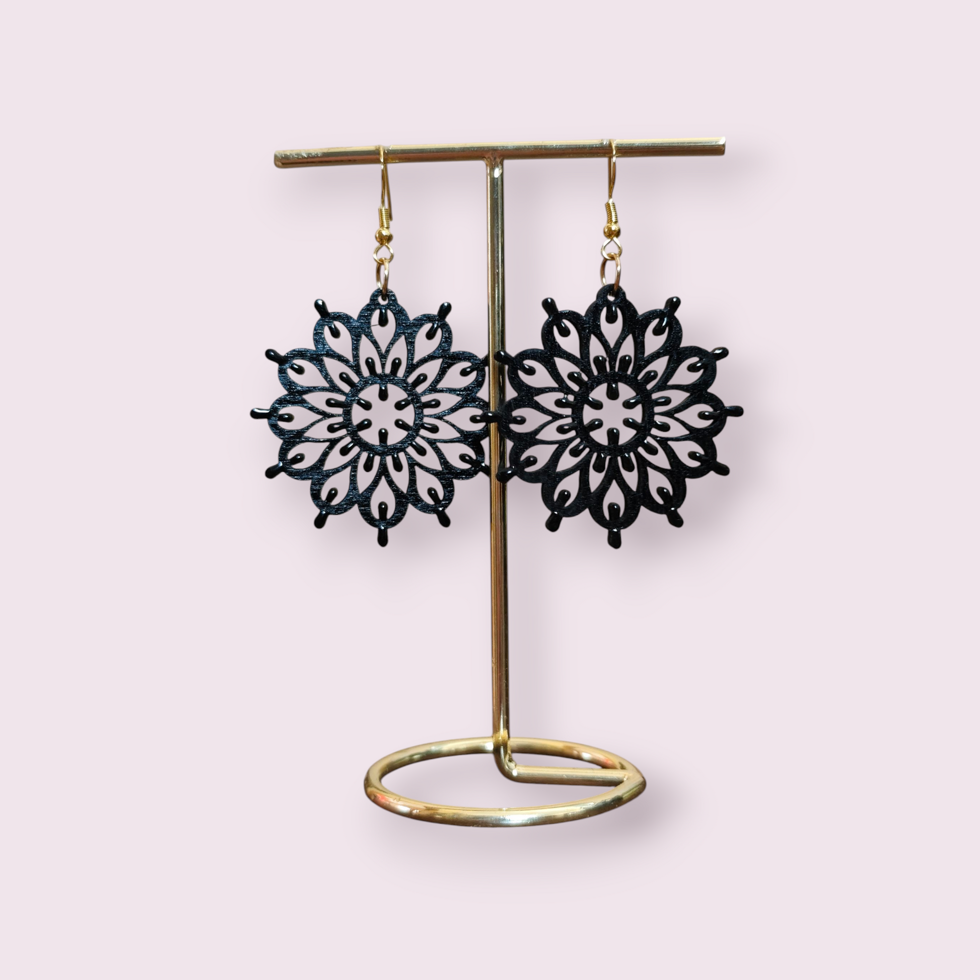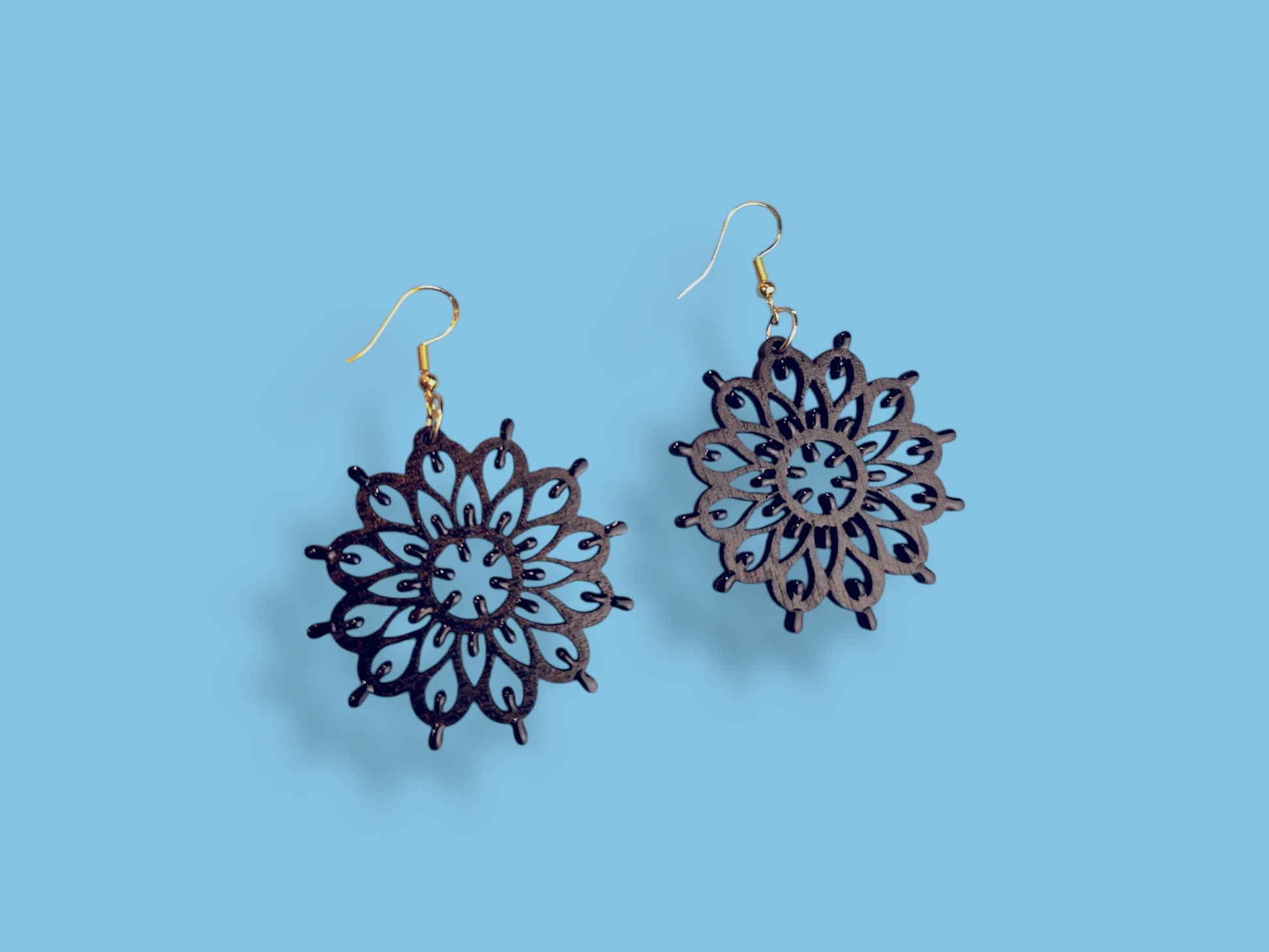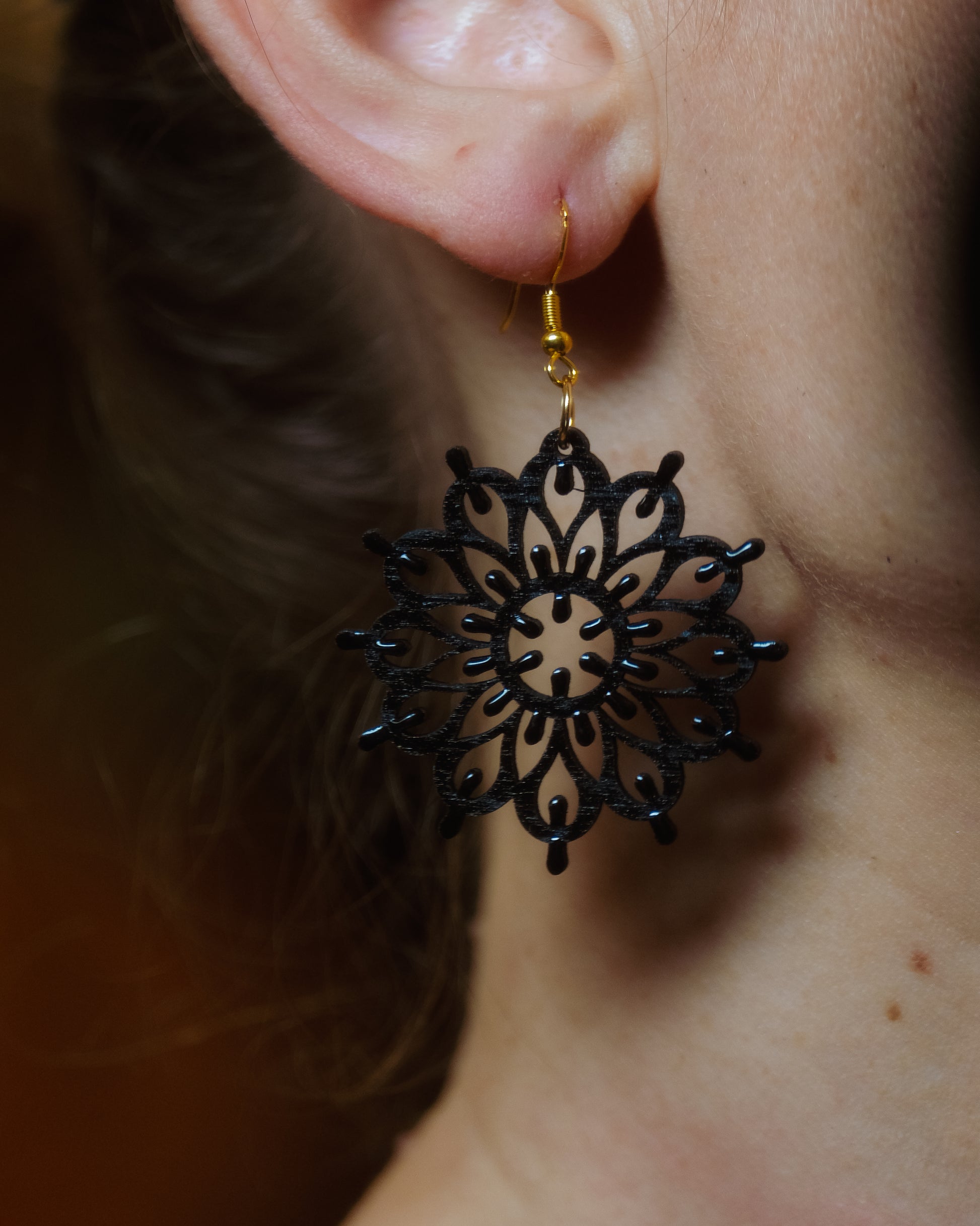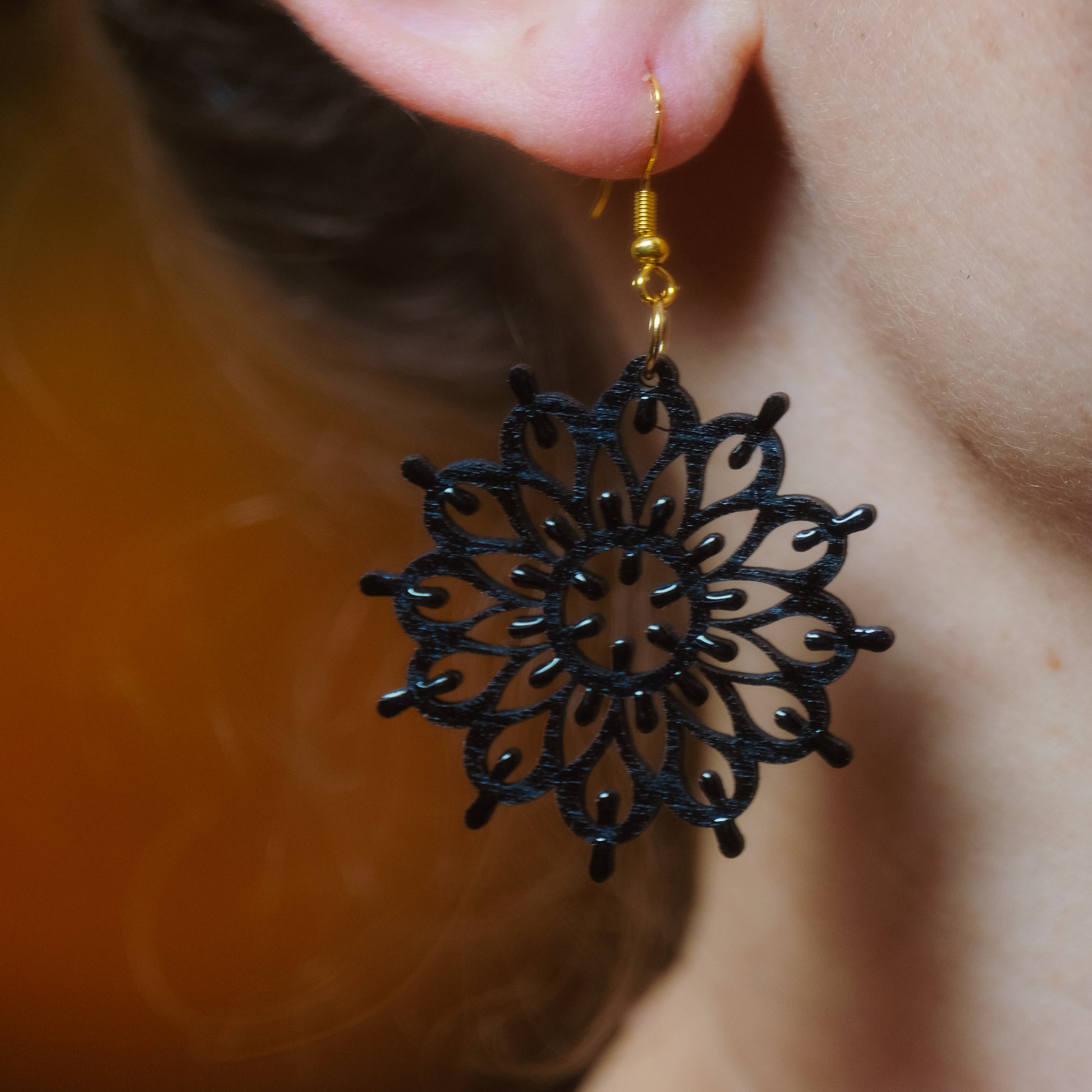 Notte in Salento Rosone Otranto total black: Orecchini in legno a forma di Luminaria Salentina