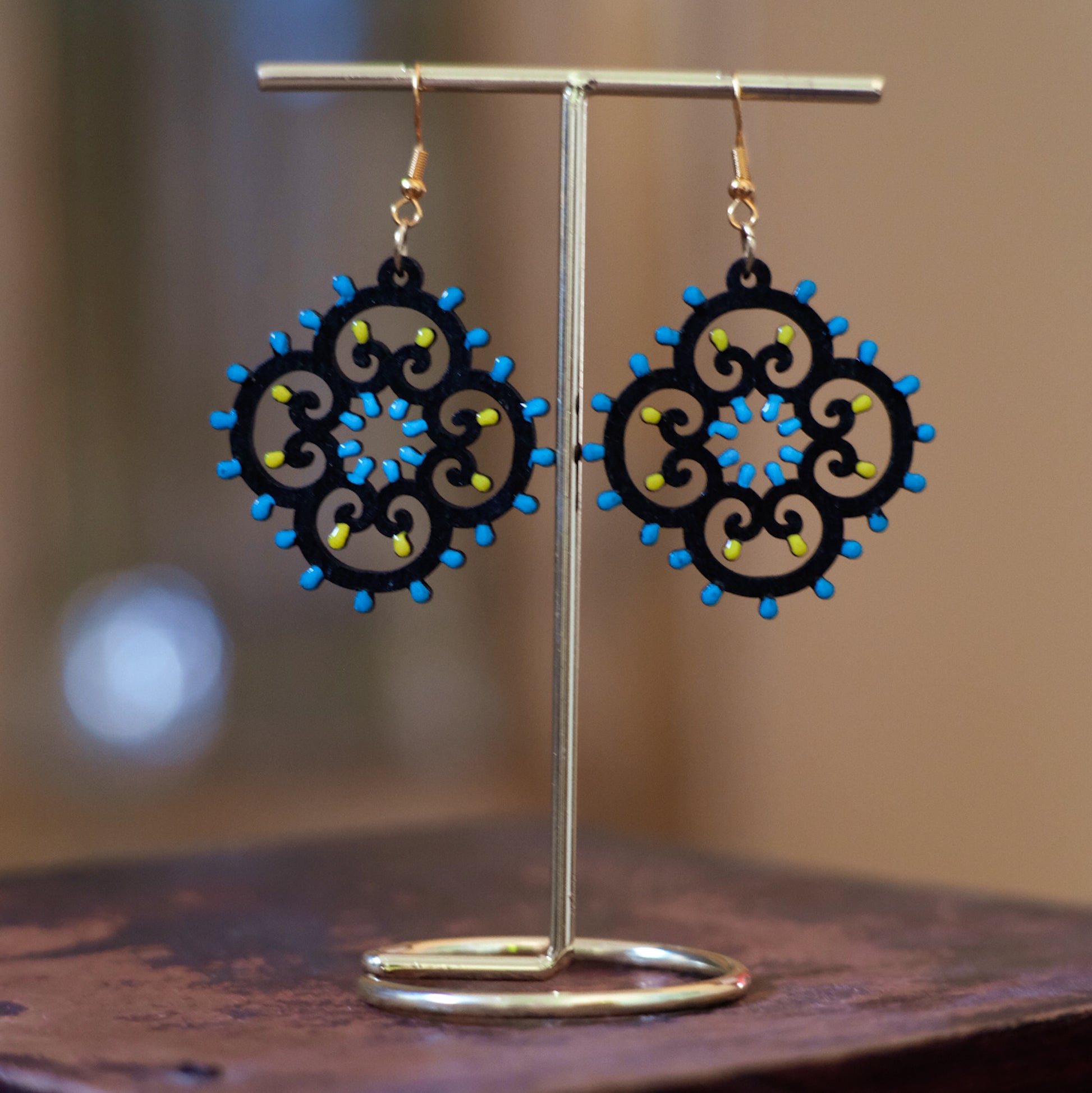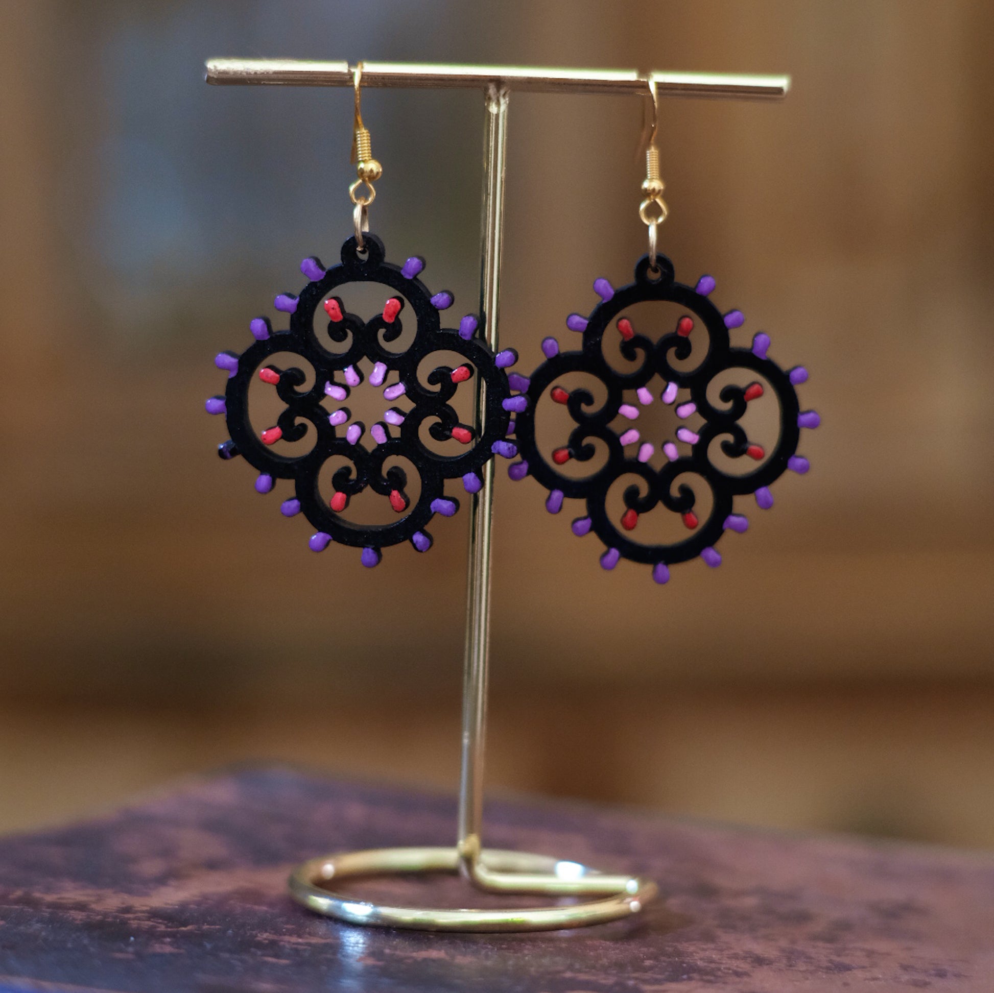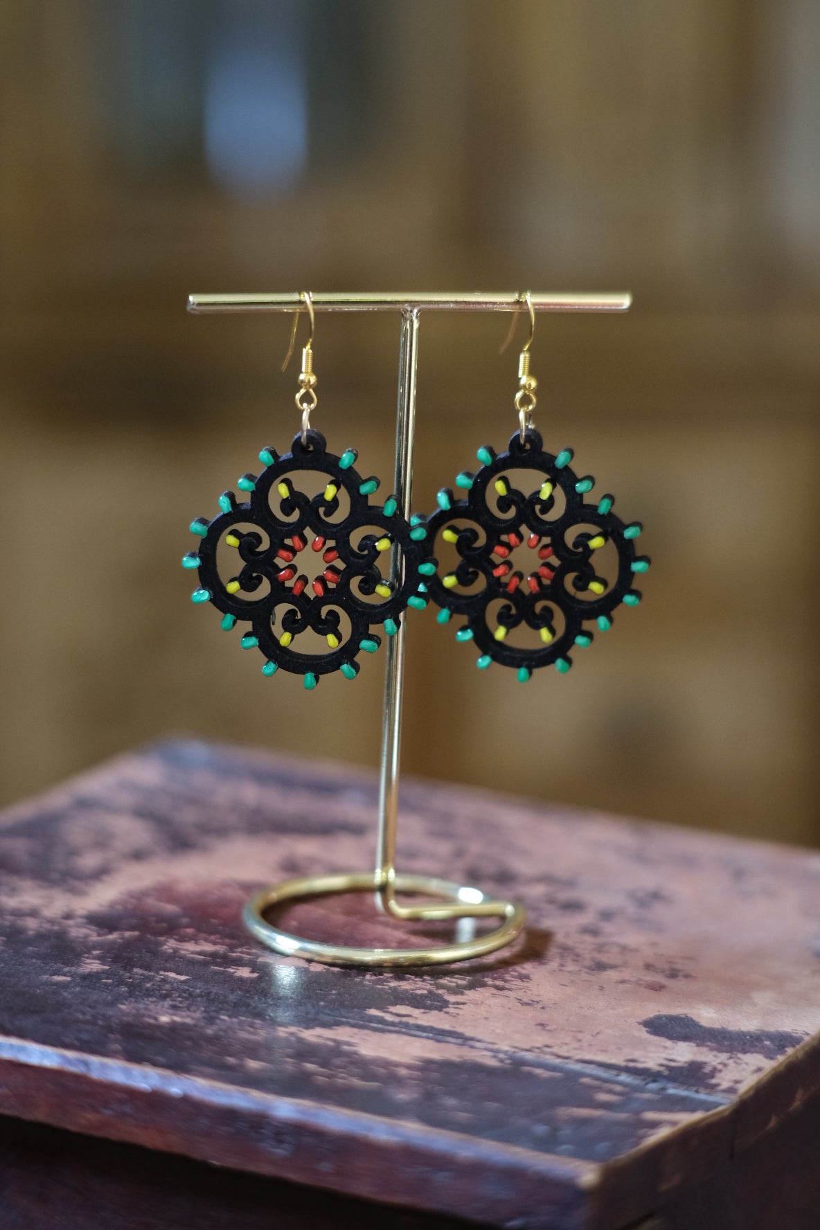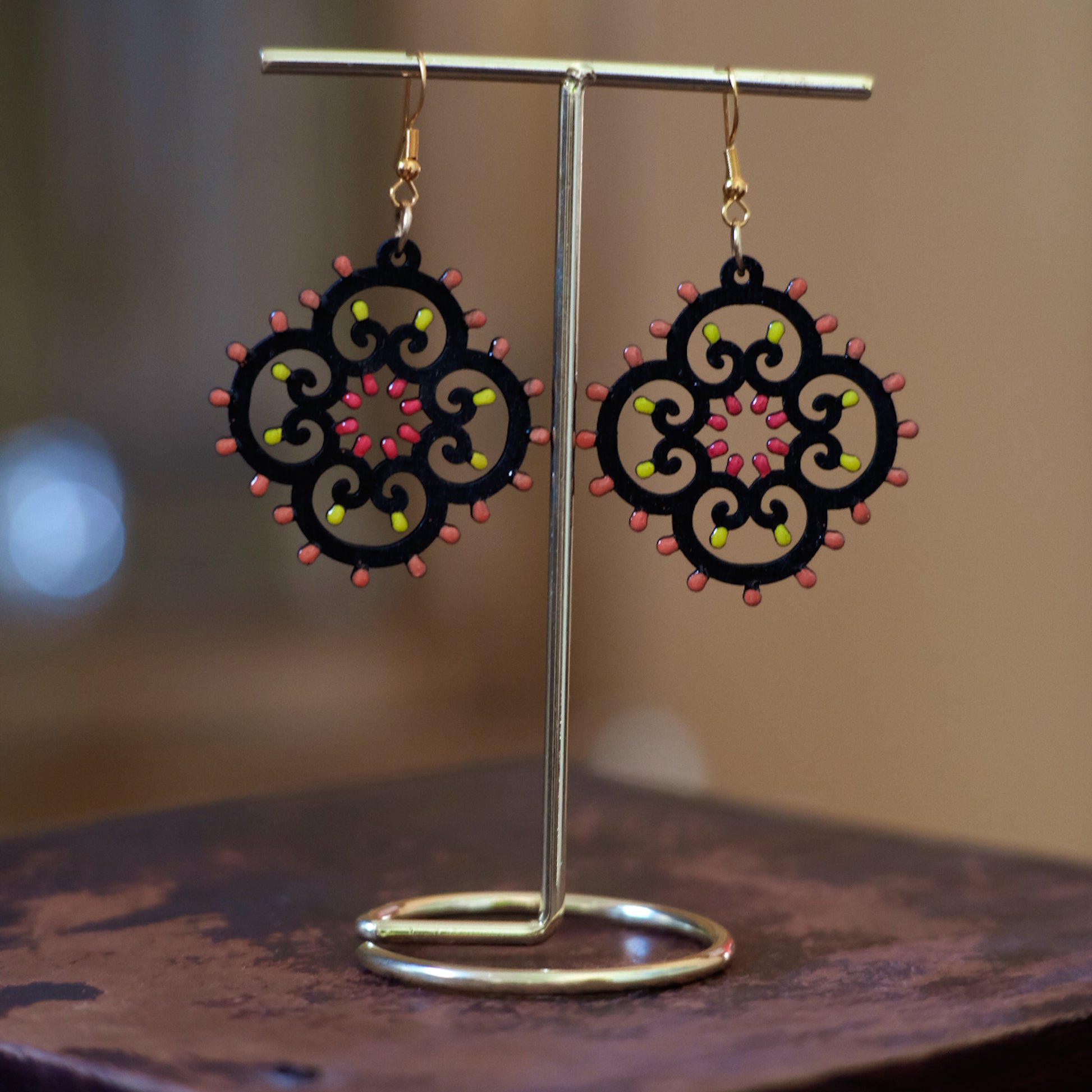 Rosoncino Barocco nero: Orecchini in legno a forma di Luminaria Salentina