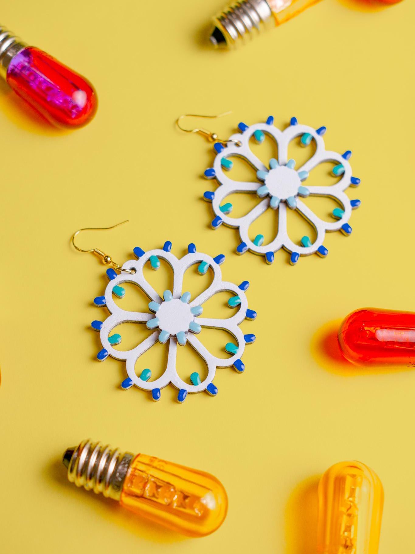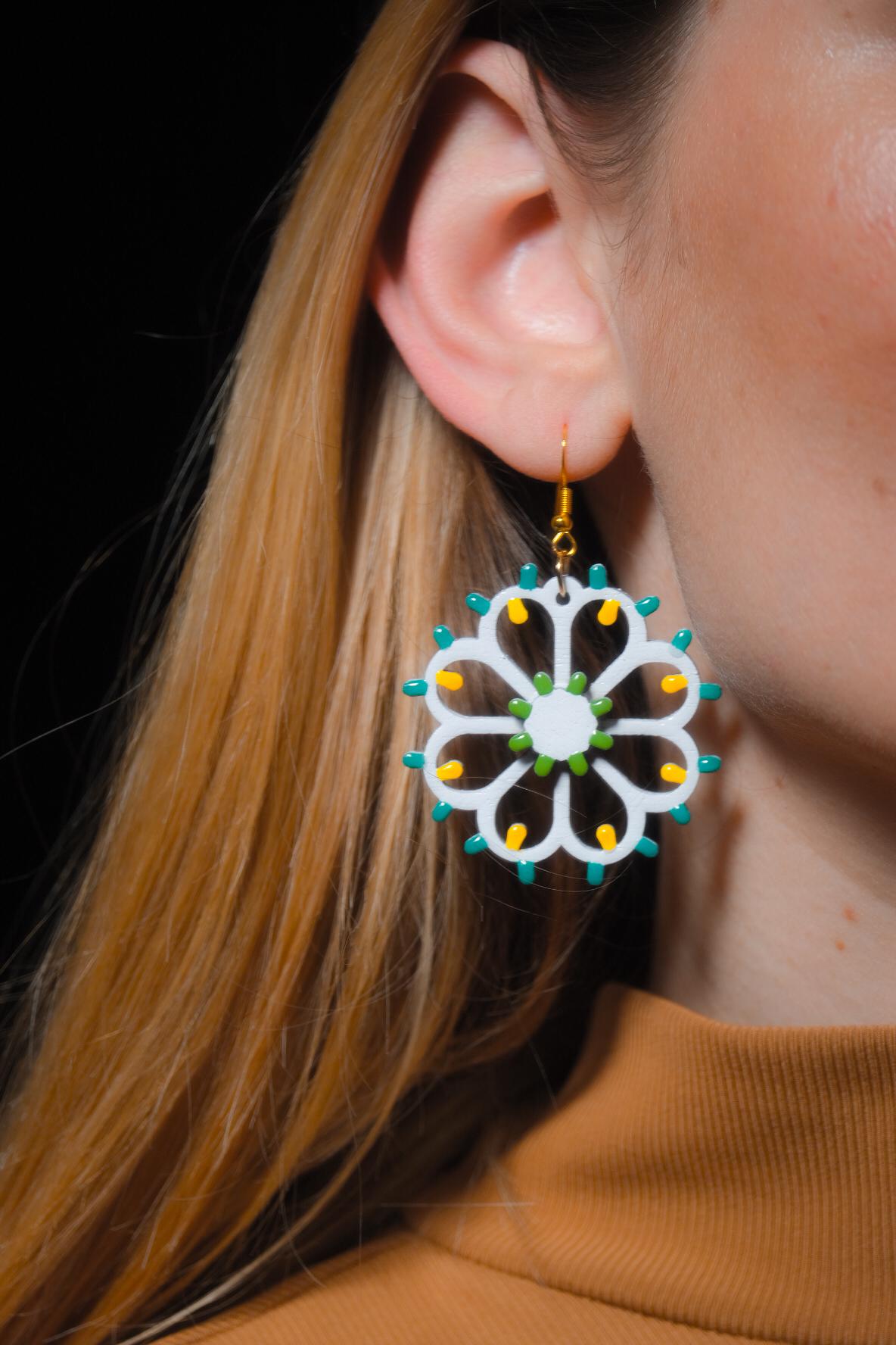 Rosone Fiore grande: Orecchini in legno a forma di Luminaria Salentina