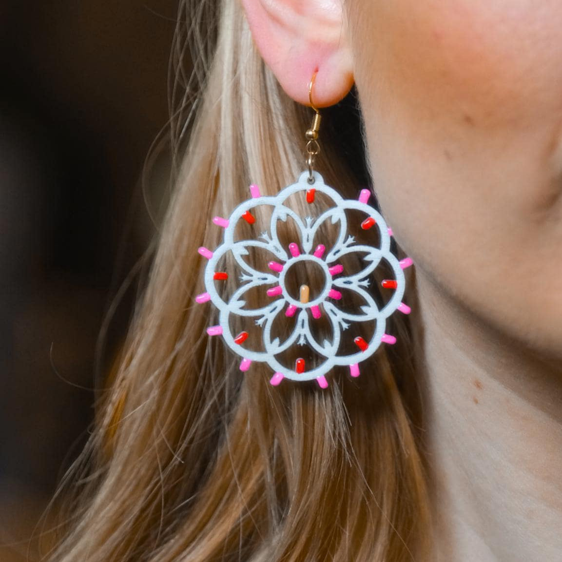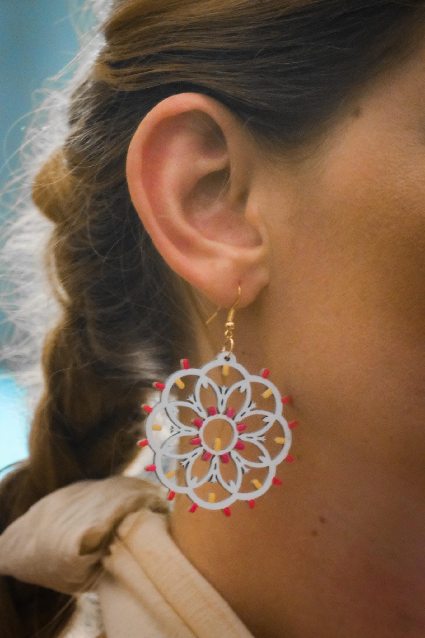 Rosone Giglio grande: Orecchini in legno a forma di Luminaria Salentina