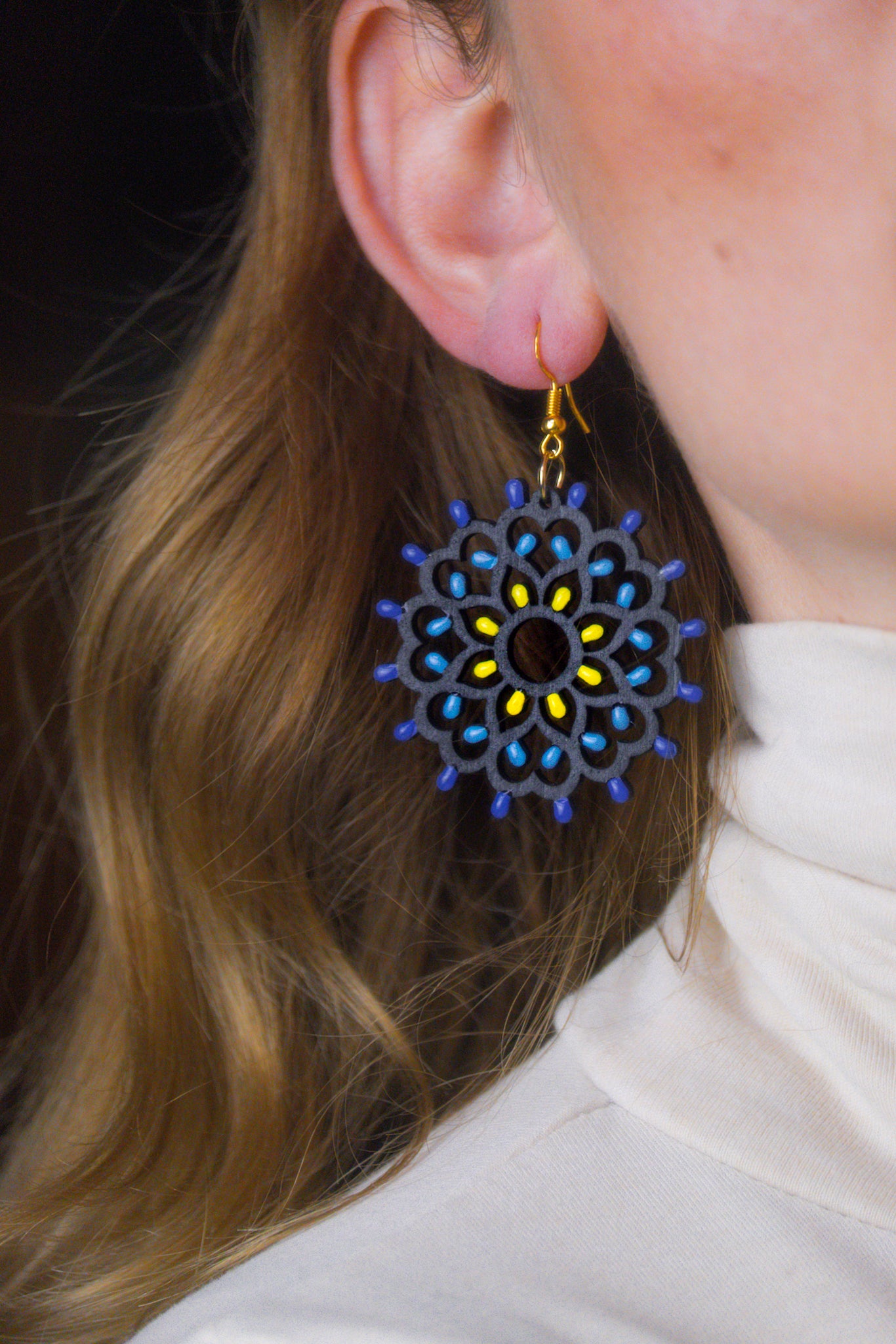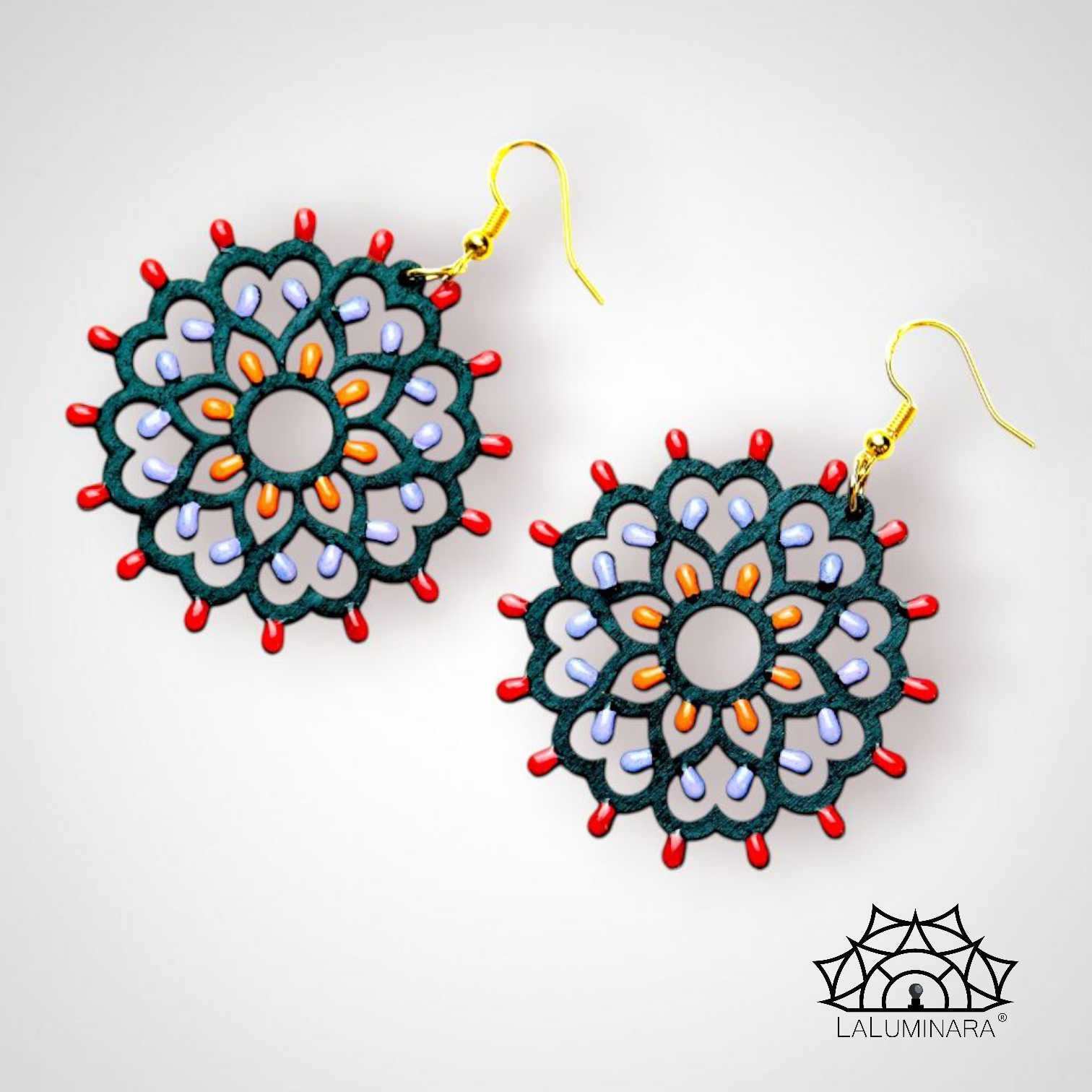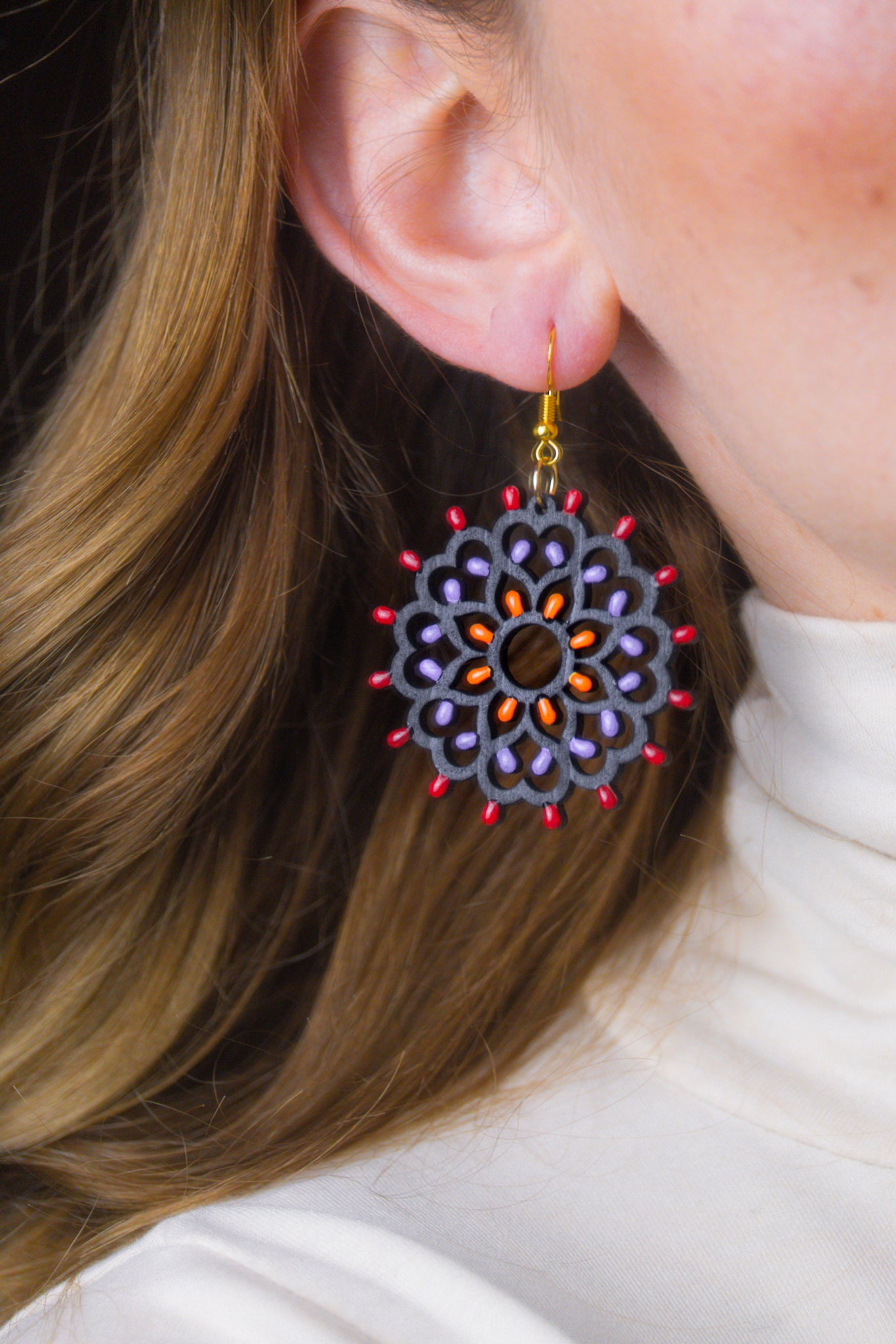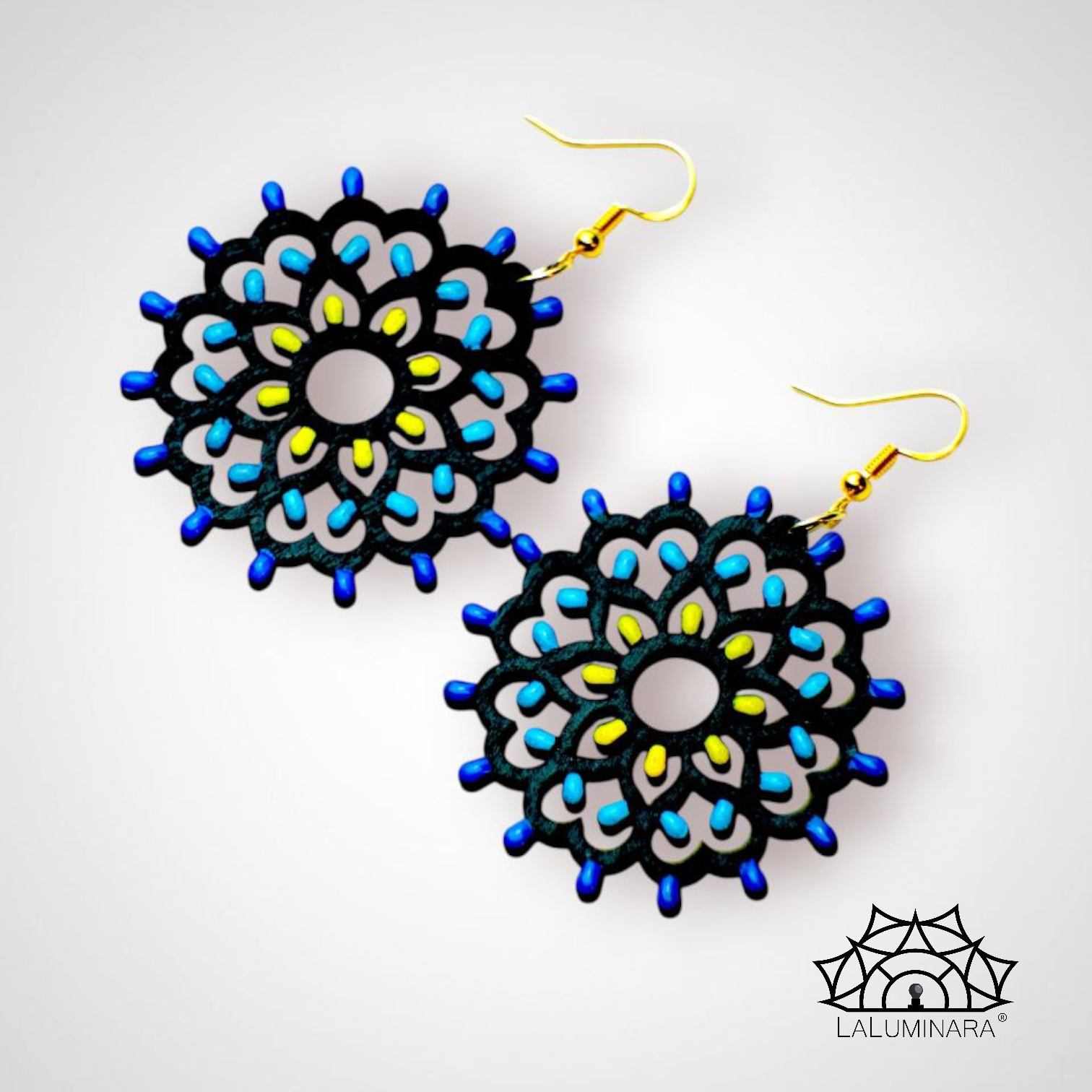 Rosone Jentu nero: Orecchini in legno a forma di Luminaria Salentina