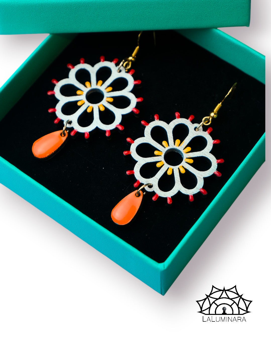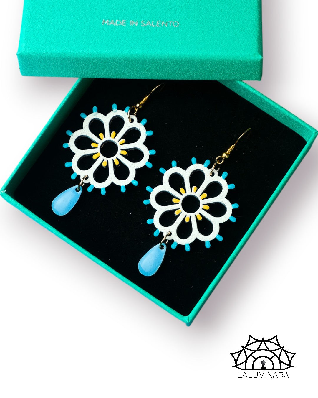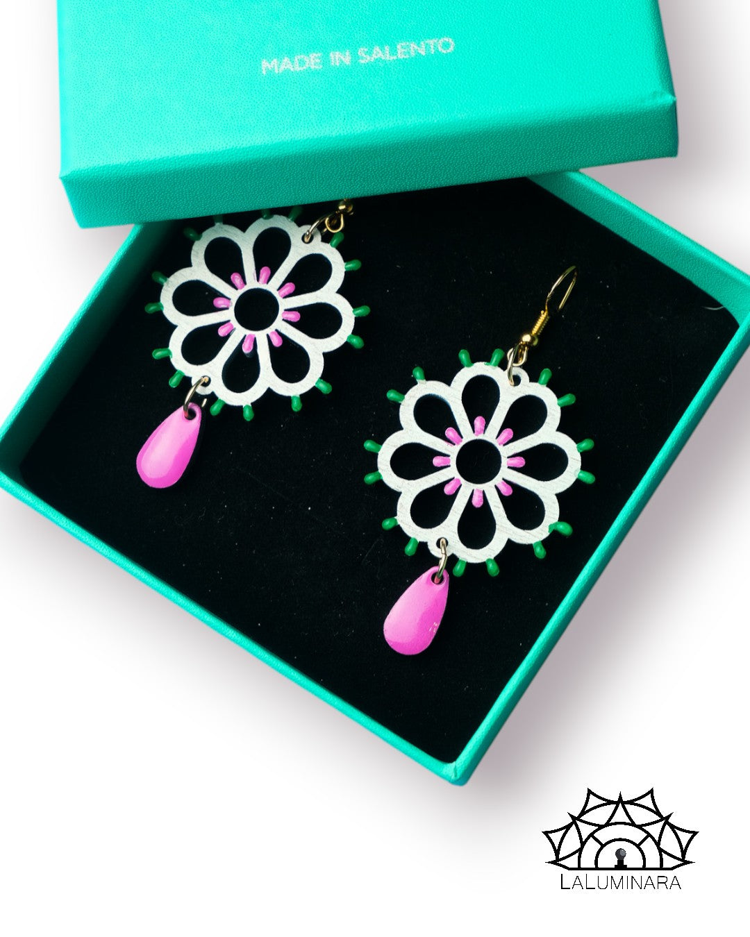 Rosone Margherita: Orecchini in legno a forma di Luminaria Salentina