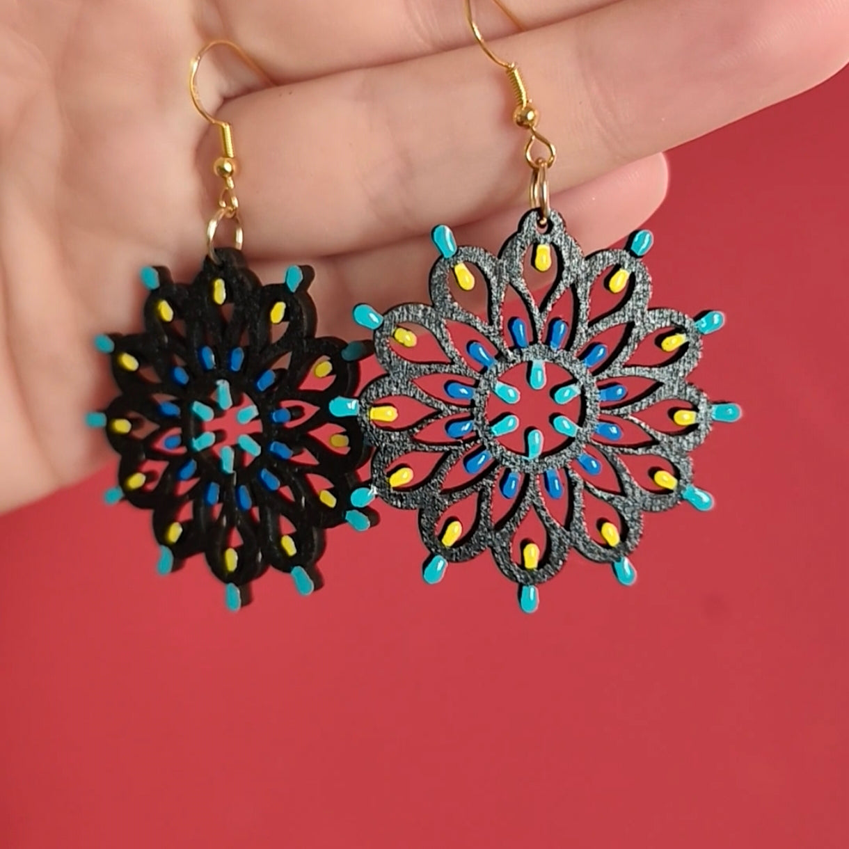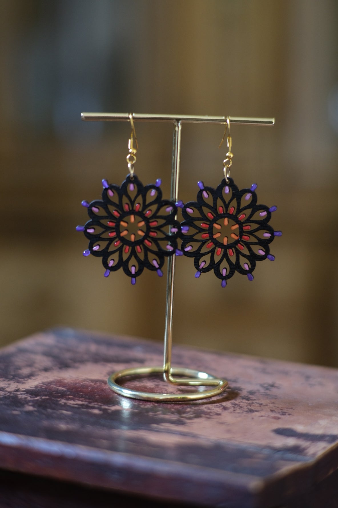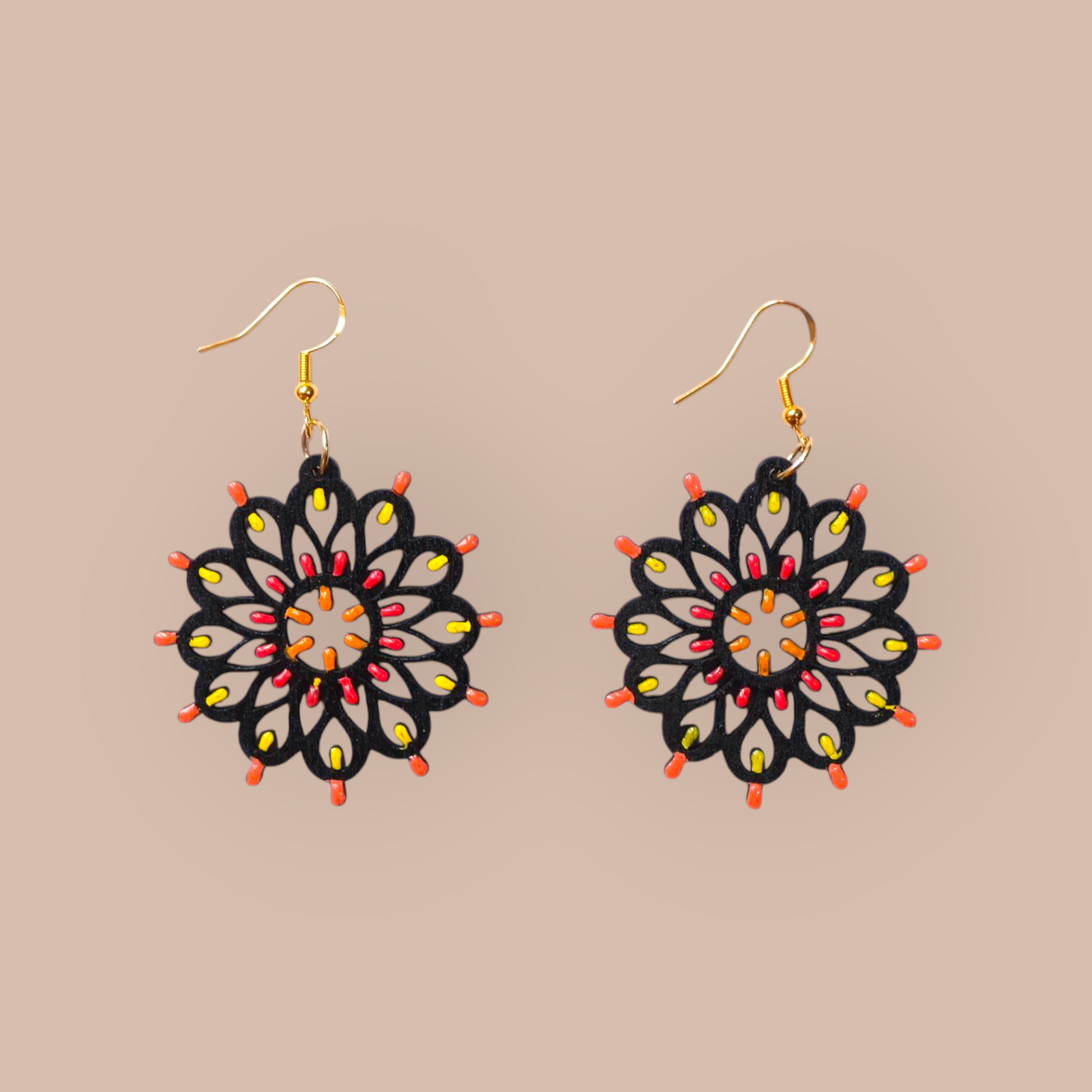 Rosone Otranto nero: Orecchini in legno a forma di Luminaria Salentina