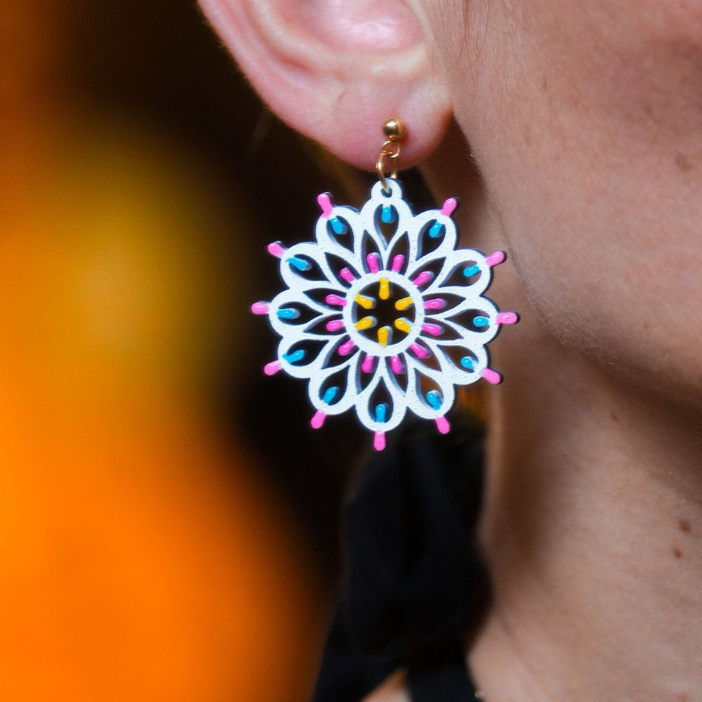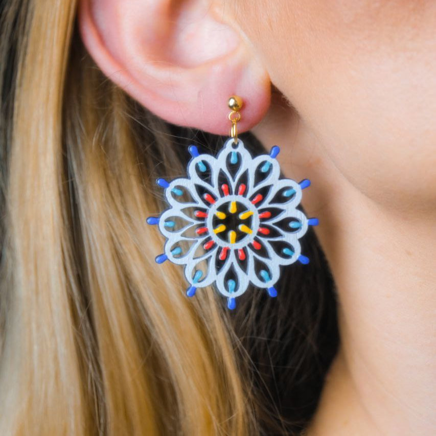 Rosone Otranto - Punto Luce: Orecchini in legno a forma di Luminaria Salentina con chiusura a perno