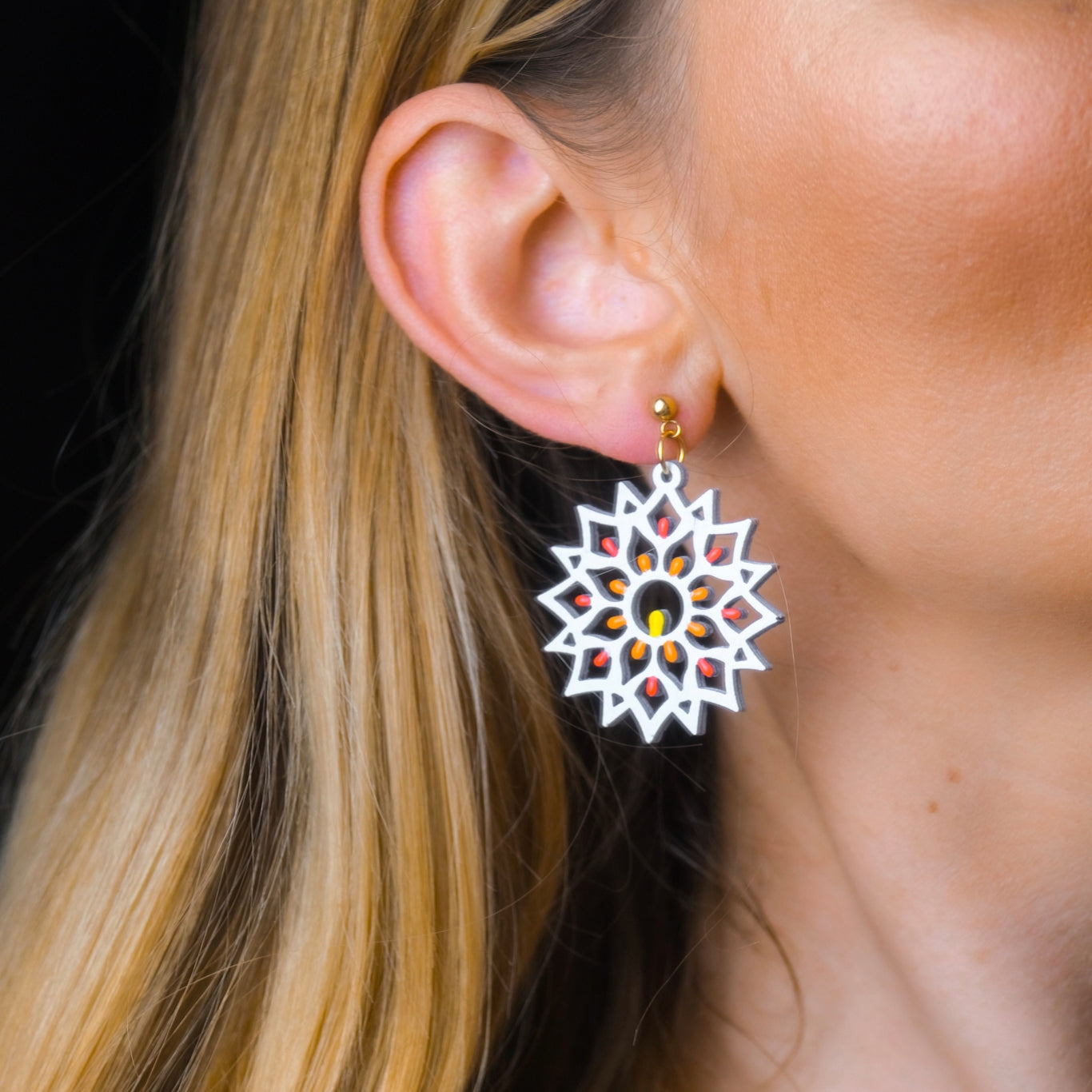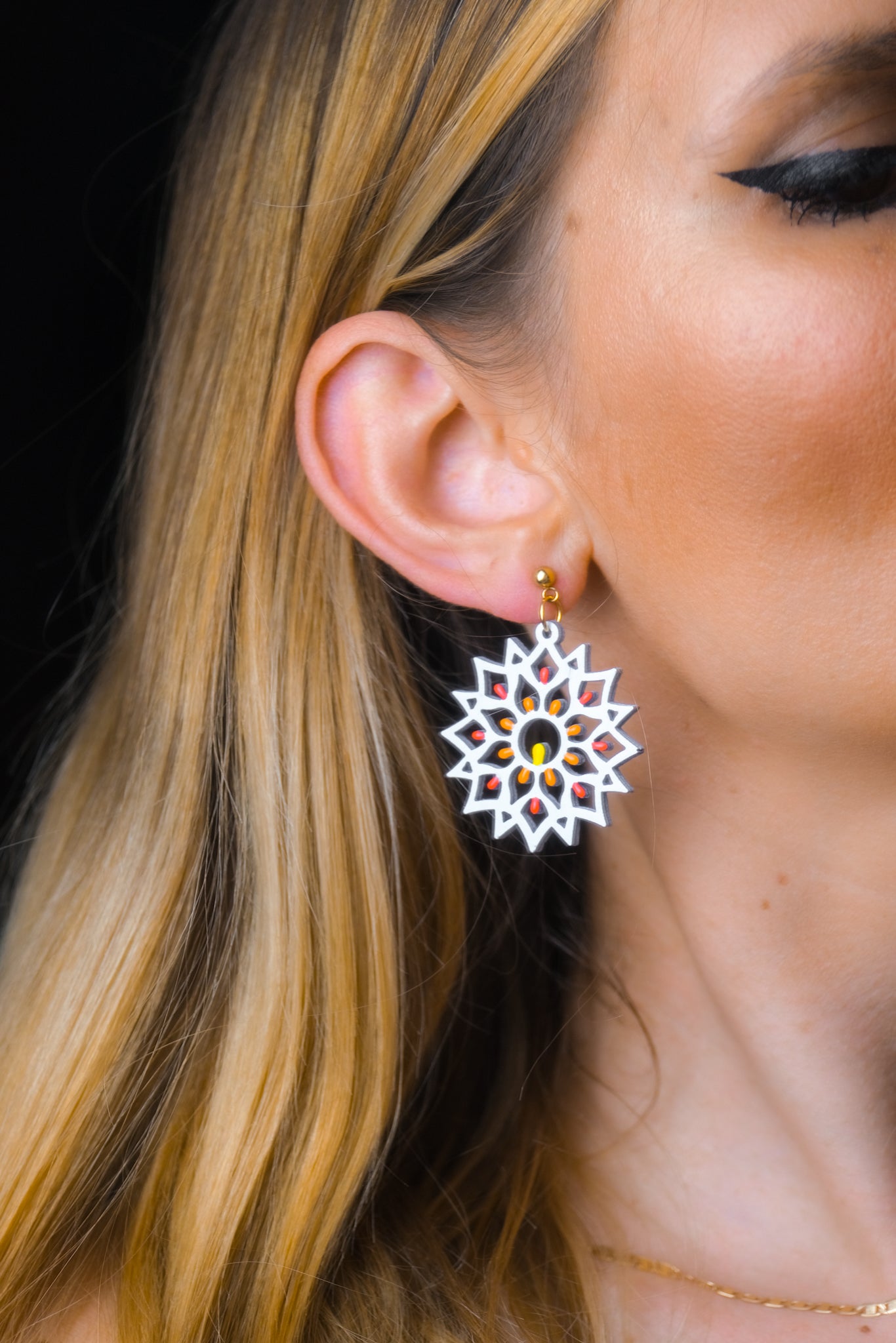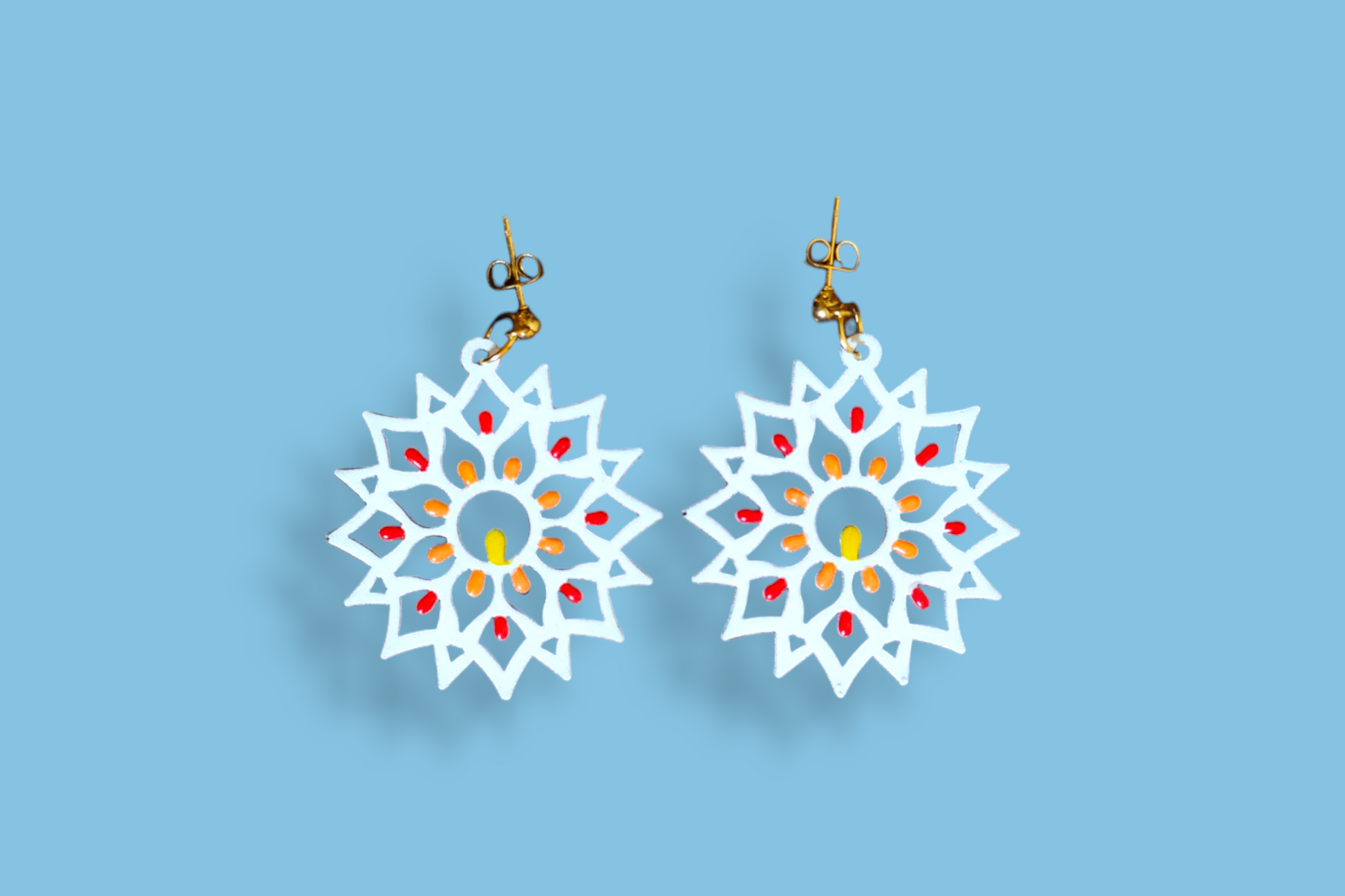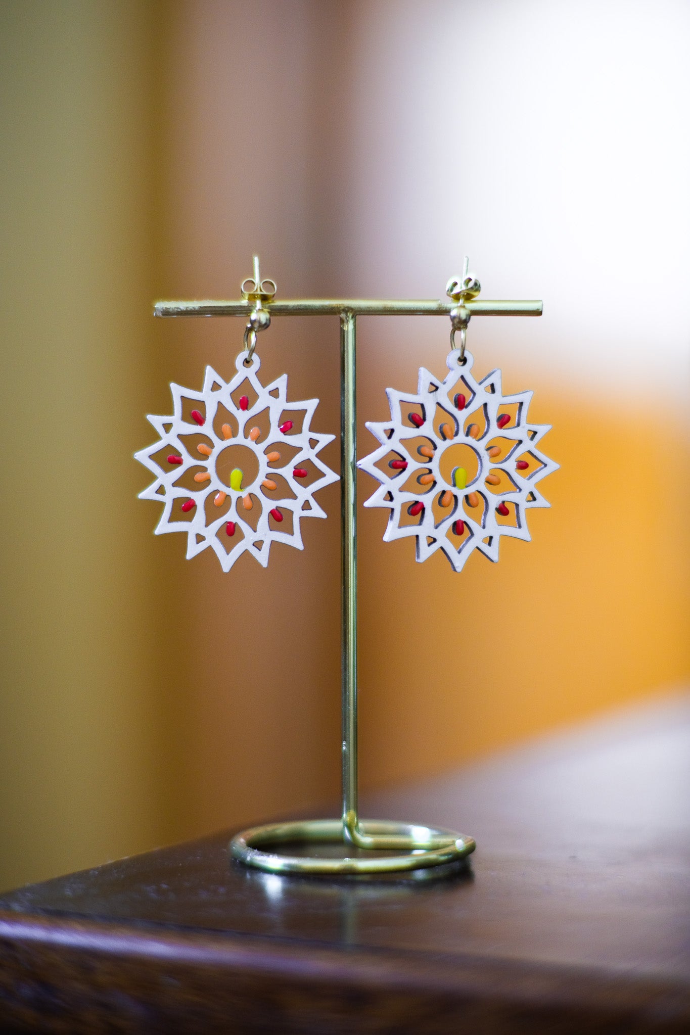 Rosone Sole Punto Luce: Orecchini in legno a forma di Luminaria Salentina con chiusura a perno