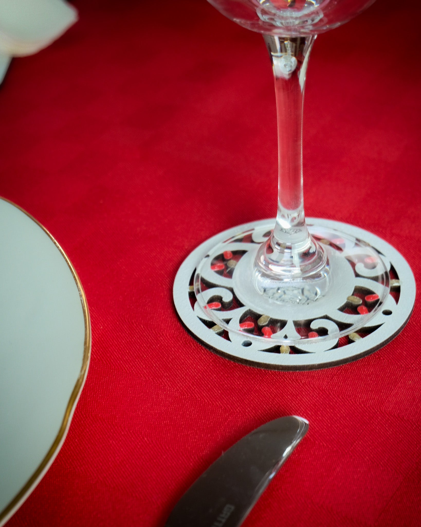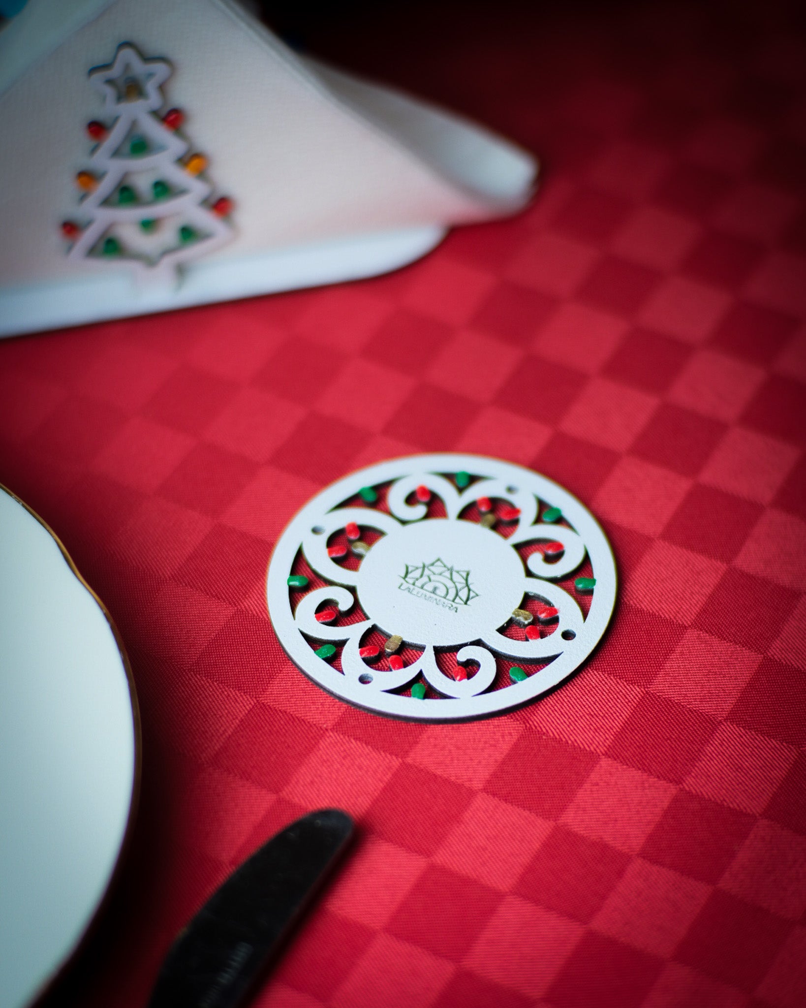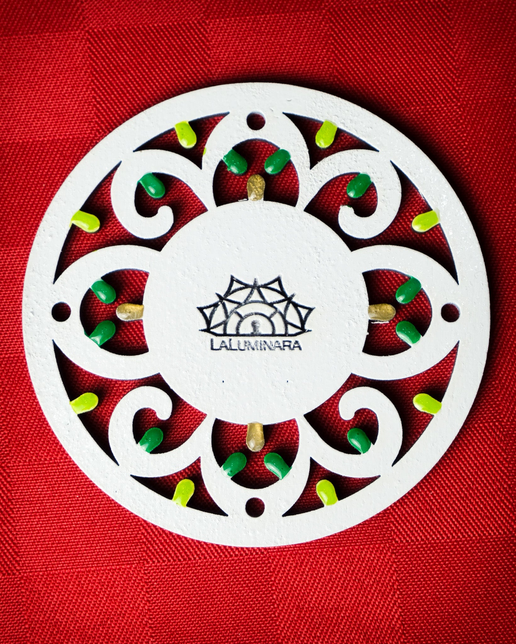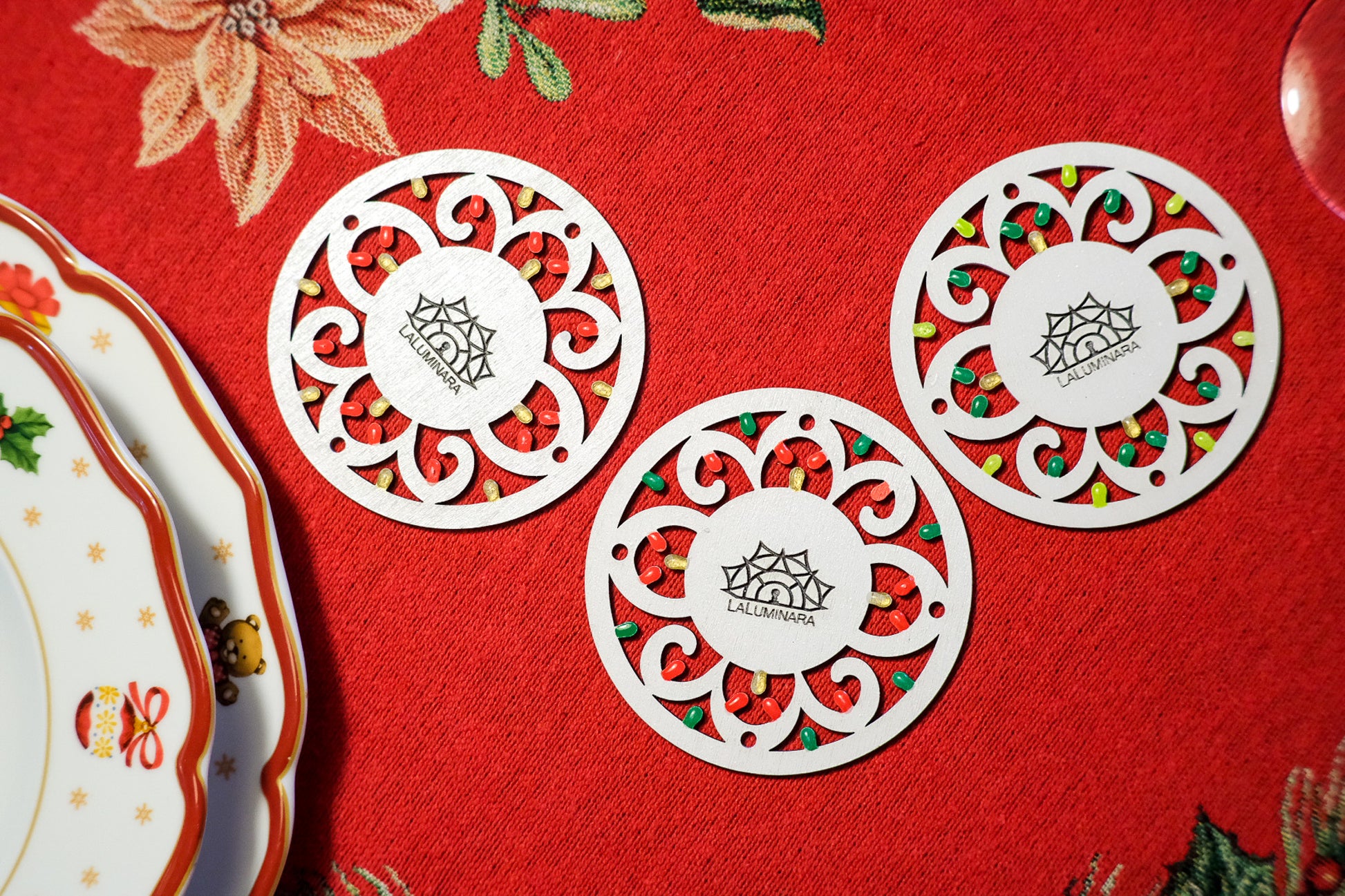 6/12 SOTTOBICCHIERI – Rosoni di Natale: sottobicchieri in legno a forma di Luminaria Salentina