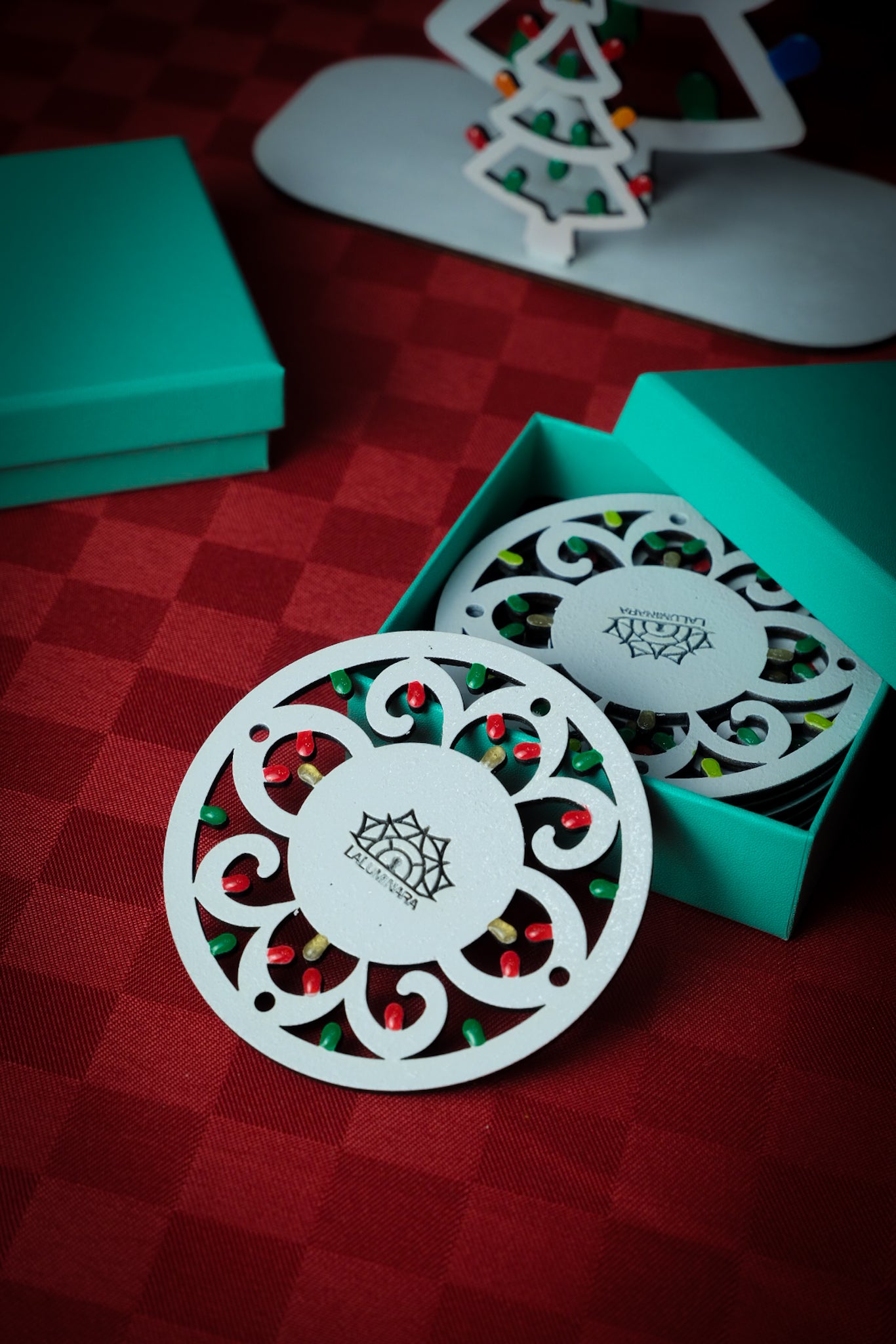 La magia delle luminarie salentine si accende in tavola: un kit coordinato e artigianale che profuma di casa, festa e tradizione. Realizzato e dipinto a mano, con le iconiche “lampadine” in resina. Confezionato e pronto per essere regalato.